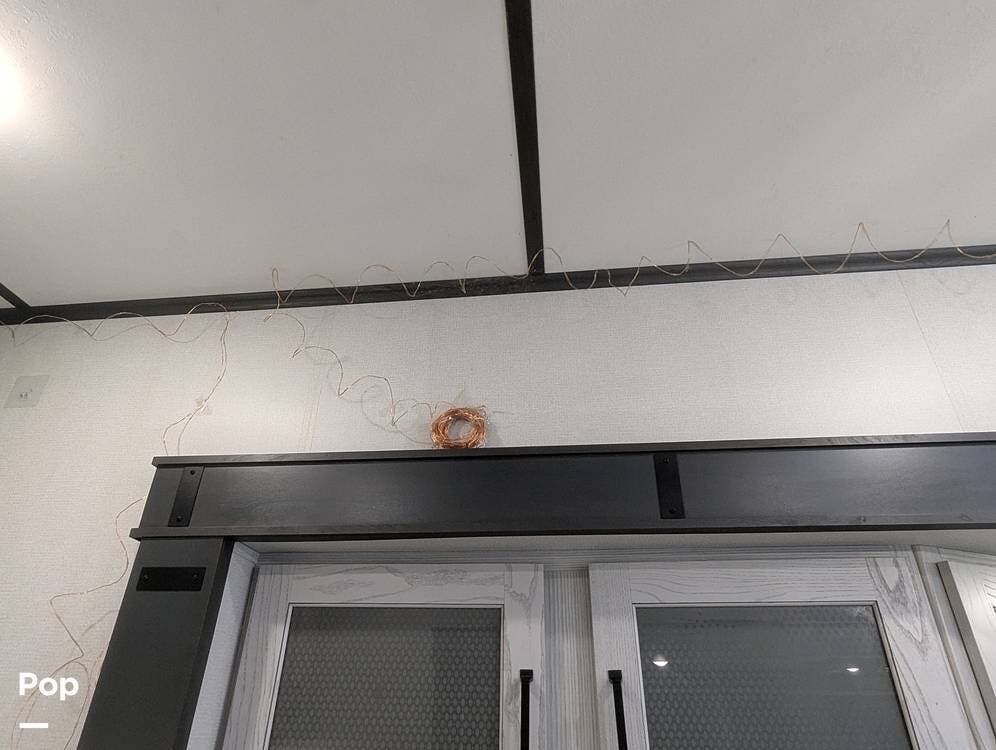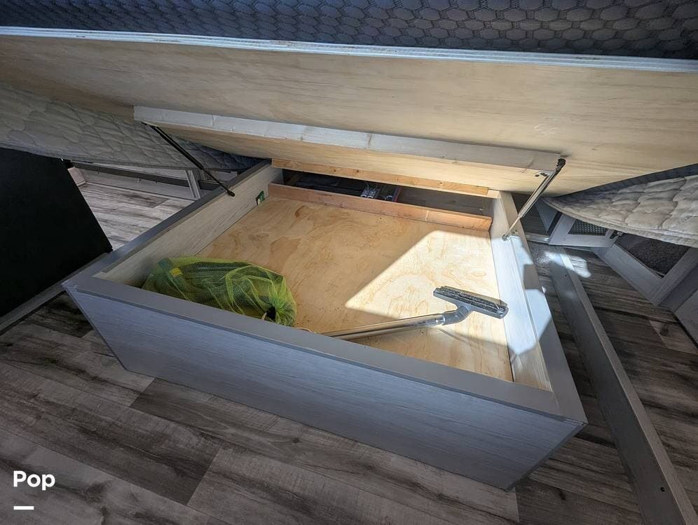 There is a separate bunkhouse with a door and two large bunks, and the dining table drops down to convert to another sleeping space if needed.