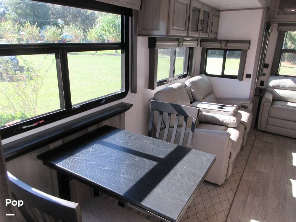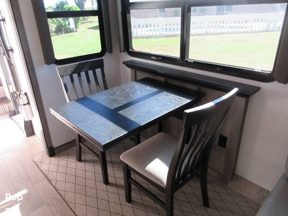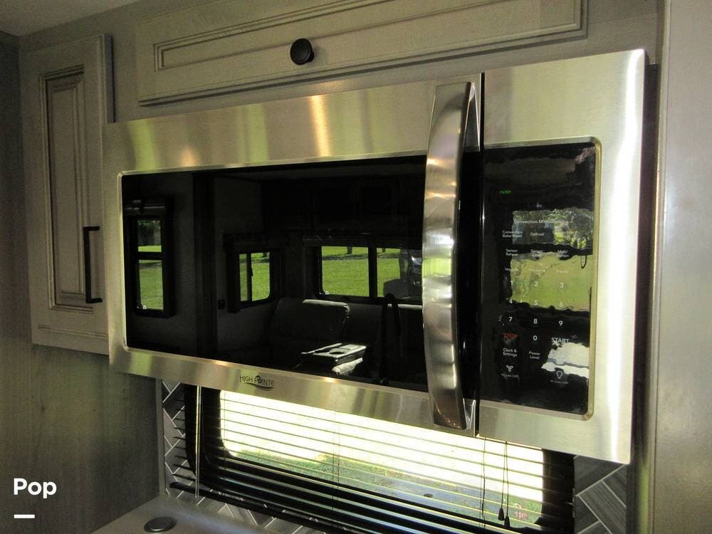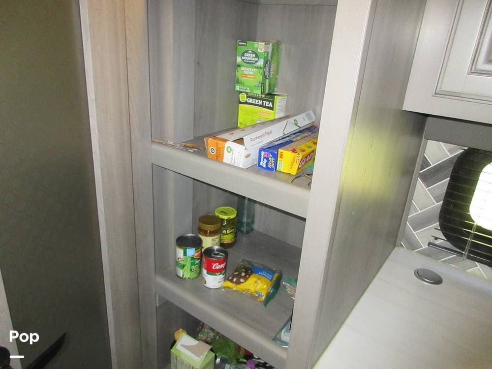 Full kitchen with a residential refrigerator, convection microwave, stove, and oven. Even a large pantry! Enjoy your meals at the free-standing legless dinette with chairs.