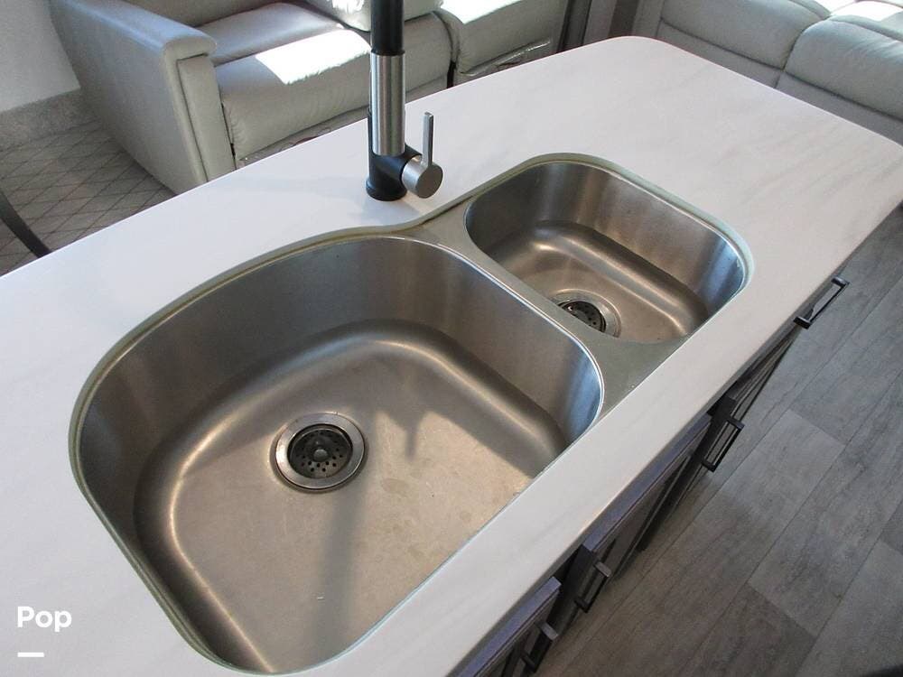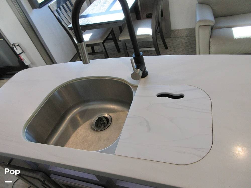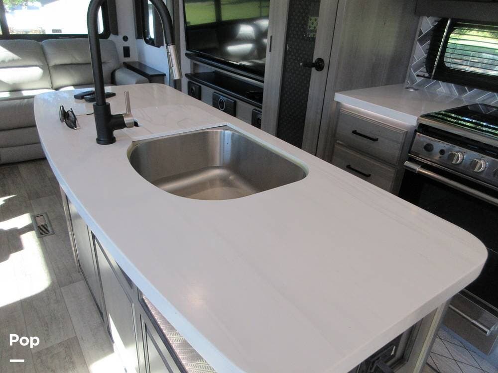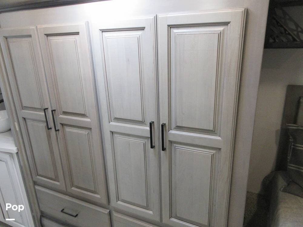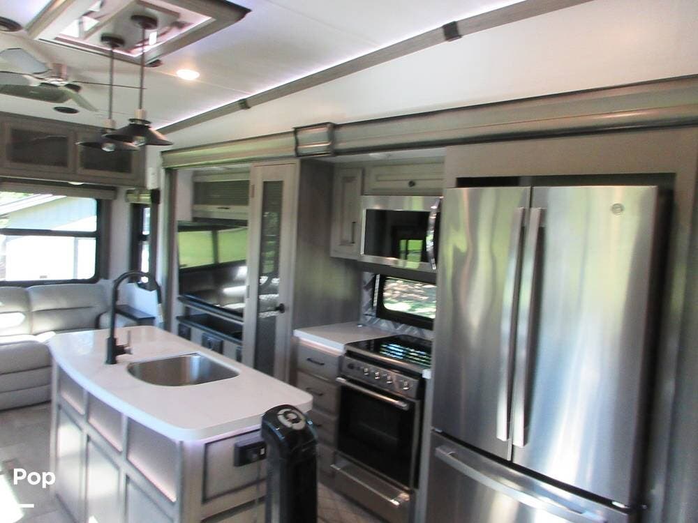 Full kitchen with a residential refrigerator, convection microwave, stove, and oven. Even a large pantry! Enjoy your meals at the free-standing legless dinette with chairs.