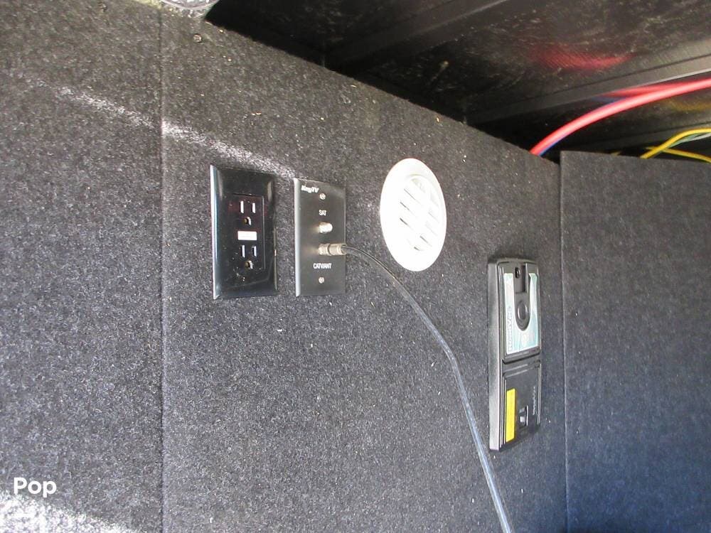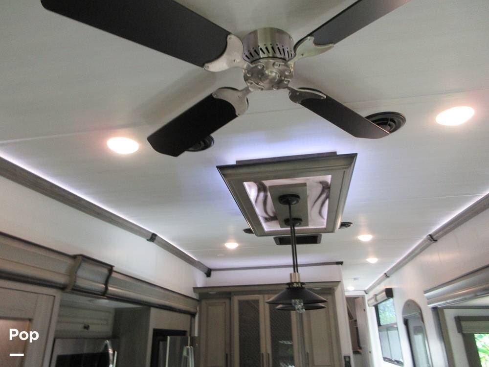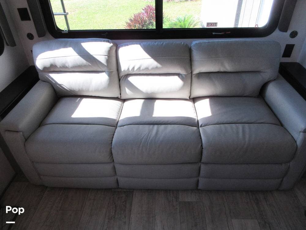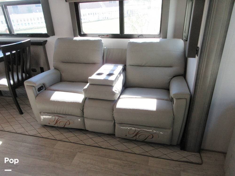 The rear living area for a relaxing evening watching your favorite movie on the 50" LCD HDTV above the fireplace to stay warm, across from the power Thomas Payne theater seating, and a rear hide-a-bed sofa which can also transform into an extra sleeping space!