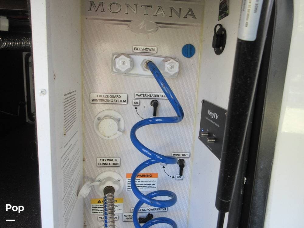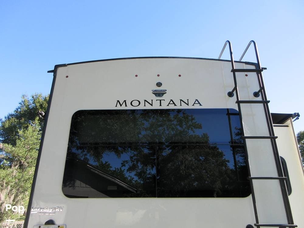 Two awnings outside with plenty of storage for all the camping gear. Also has a solar panel with a charger to keep the batteries fully charged. Roof ladder for easy access! This Montana is ready to get back "on The Road Again" now!