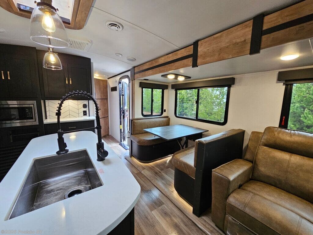 Explore the freedom of the open road with the 2022 Keystone Outback 328RL, a used travel trailer designed to elevate your camping adventures. This spacious model comfortably accommodates up to six people, making it an ideal choice for families or groups looking to enjoy quality time together. The interior offers a well-thought-out living area that blends comfort and functionality, perfect for relaxing after a day of outdoor activities. Thanks to three slide outs, you benefit from expanded living space inside, creating a roomy atmosphere for dining, lounging, and entertaining. The flexible sleeping accommodations ensure everyone has a cozy spot to recharge for the next day's adventures. Equipped with convenient features such as an awning for shade and leveling jacks for easy setup, this RV enhances your camping experience with added comfort and simplicity. The hitch weight of 1075 pounds and dry weight of 8856 pounds balance towability with stability, making it manageable for experienced RVers. Whether you are planning weekend getaways or extended trips, the Outback 328RL delivers the reliability and amenities you expect in a high-quality travel trailer. As a family-owned, award-winning local RV dealer with multiple locations in Sumner, Everett, Kent, and Mt. Vernon Washington, Poulsbo RV here to help you find the perfect RV. Stock#: CCP5366, VIN: 4YDT0BR26NB451813.
