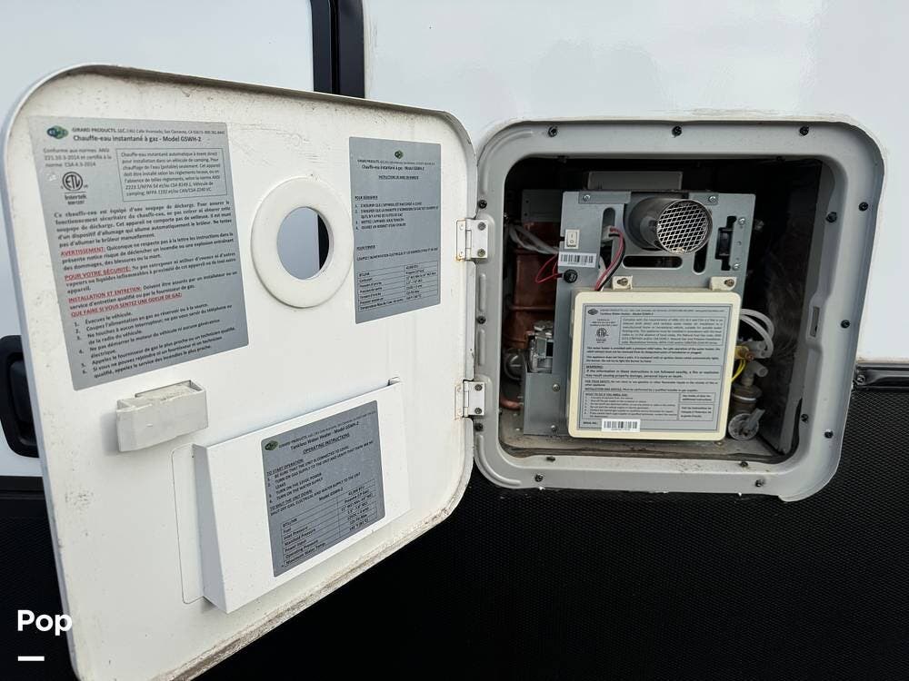 There's a 5.5kW Onan generator, a leveling system, a ramp patio with an awning, a fuel station for the toys, exterior speakers, an outdoor shower, and hookups for an exterior TV. It's loaded and has only been used occasionally.