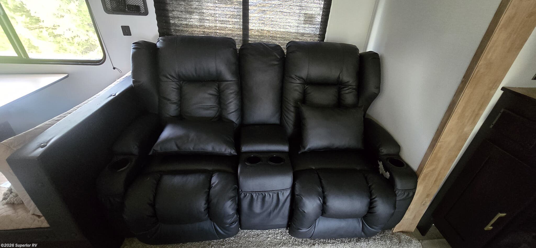 Bunk Beds, Queen Bed, Roof Vents, Shower, Theater Seating, Toilet