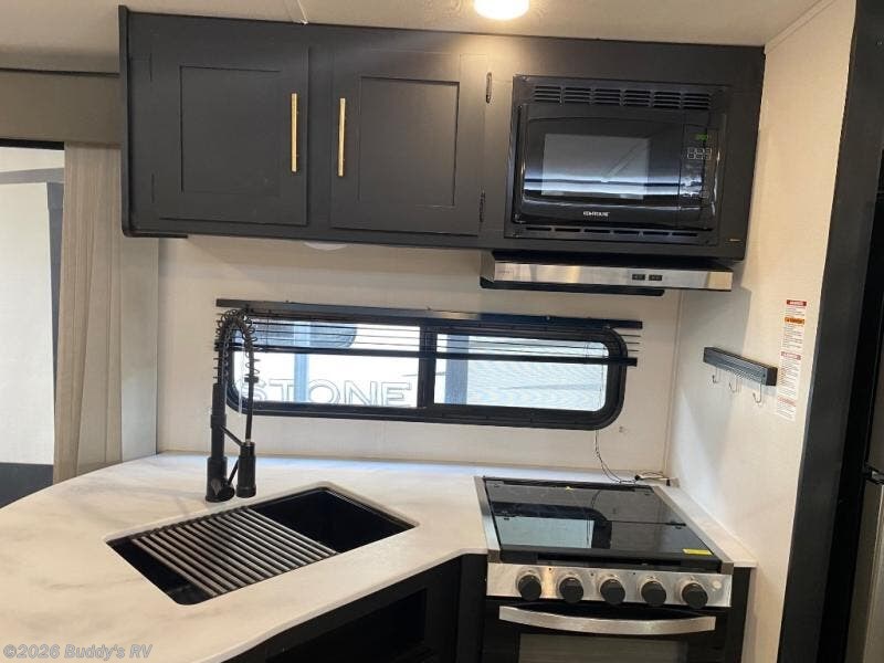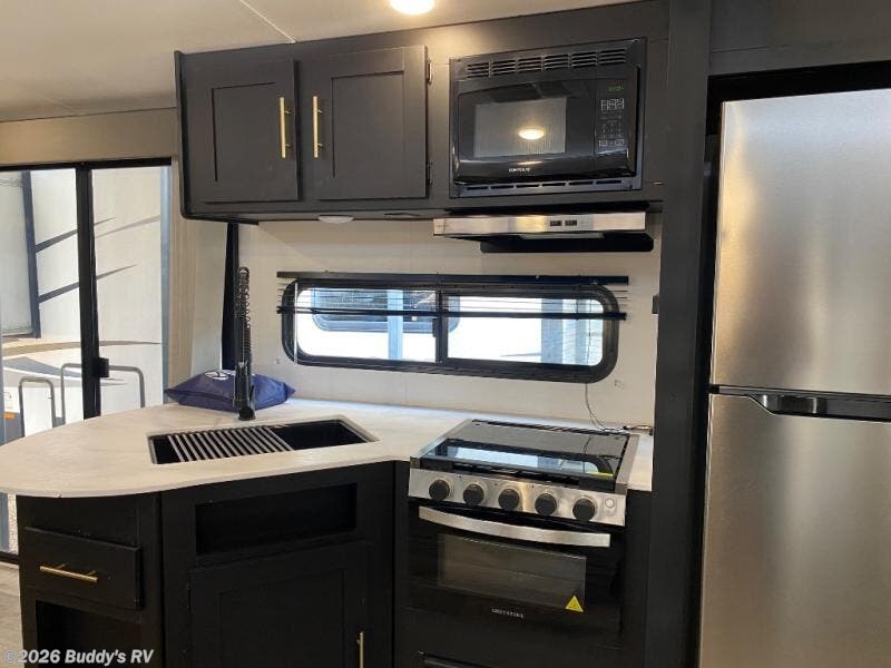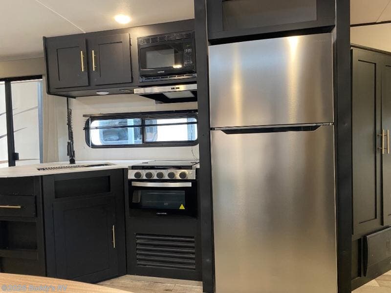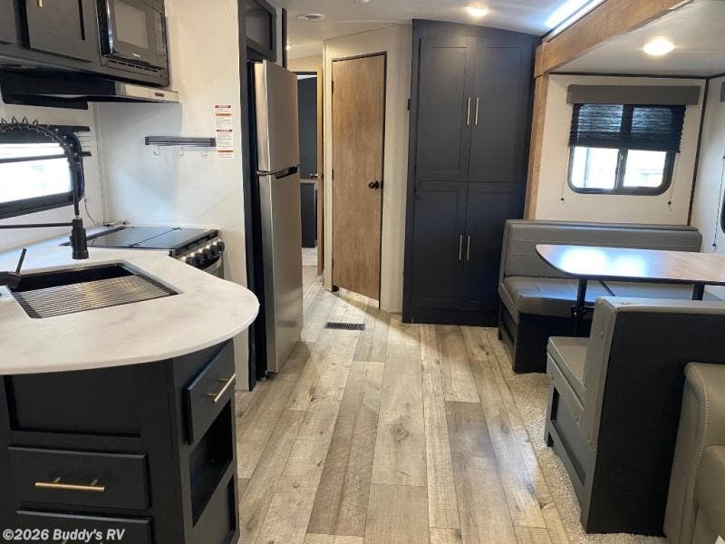 Spending time away from home will be easy in this Keystone Springdale! This destination trailer gives you two private bedrooms, both with queen-size beds, as well as some added sleeping space in the living area on the furniture. The large slide in the main area gives you plenty of walking around space while you cook all the family favorites with full amenities including a residential refrigerator. You will find plenty of storage throughout including in the two pantries, the overhead cabinets, the front bedroom closets, the rear bedroom wardrobe and along the exterior for your outdoor gear. And the full bathroom will keep you refreshed for your next activity or bedtime.