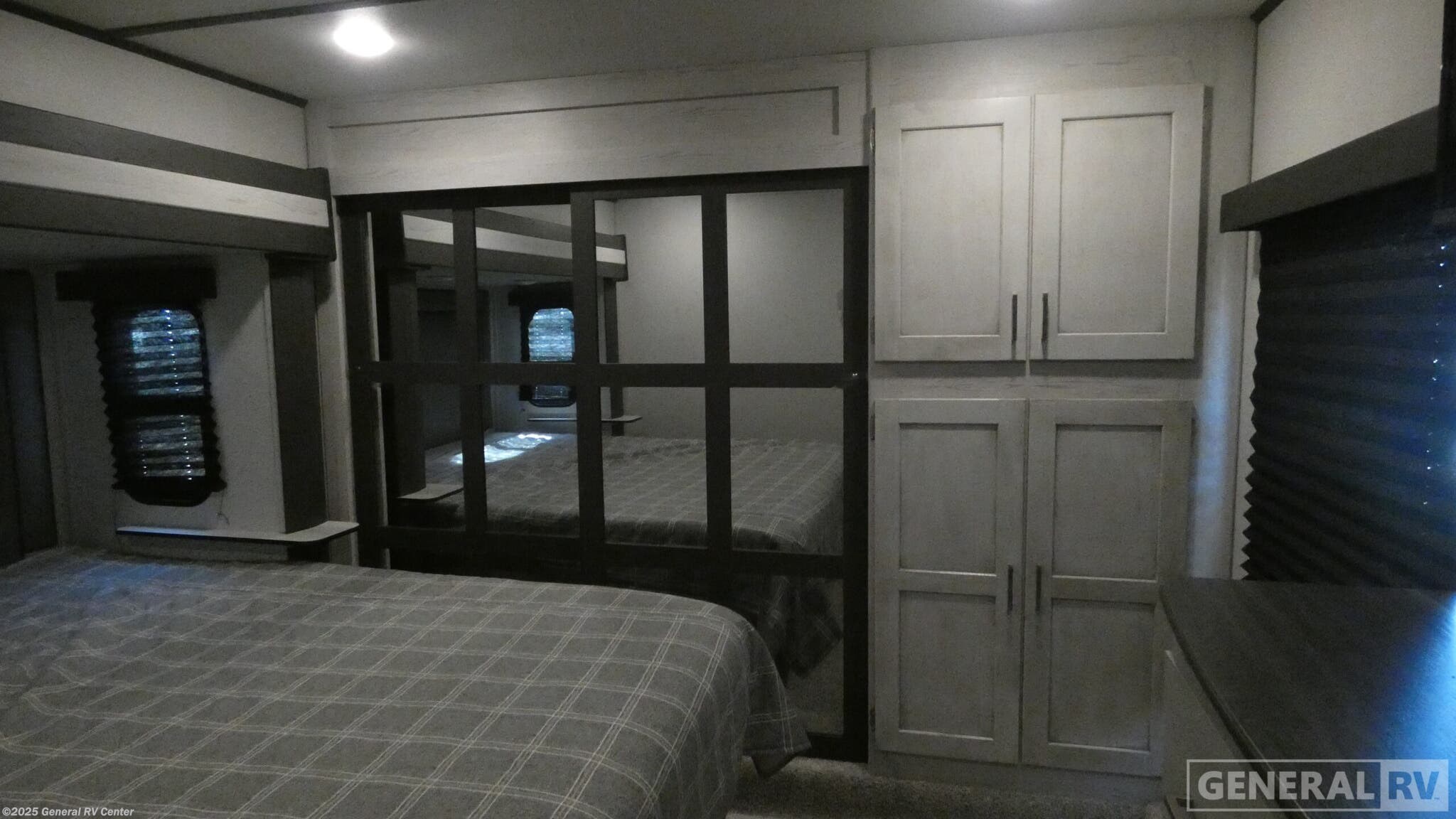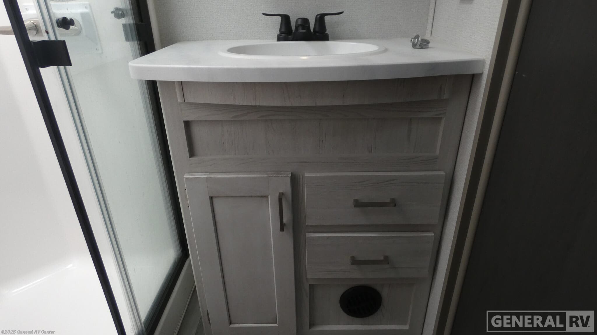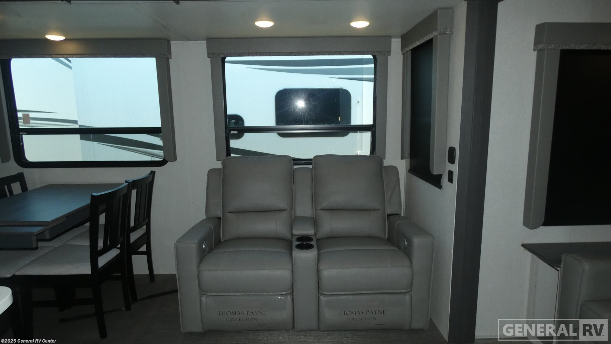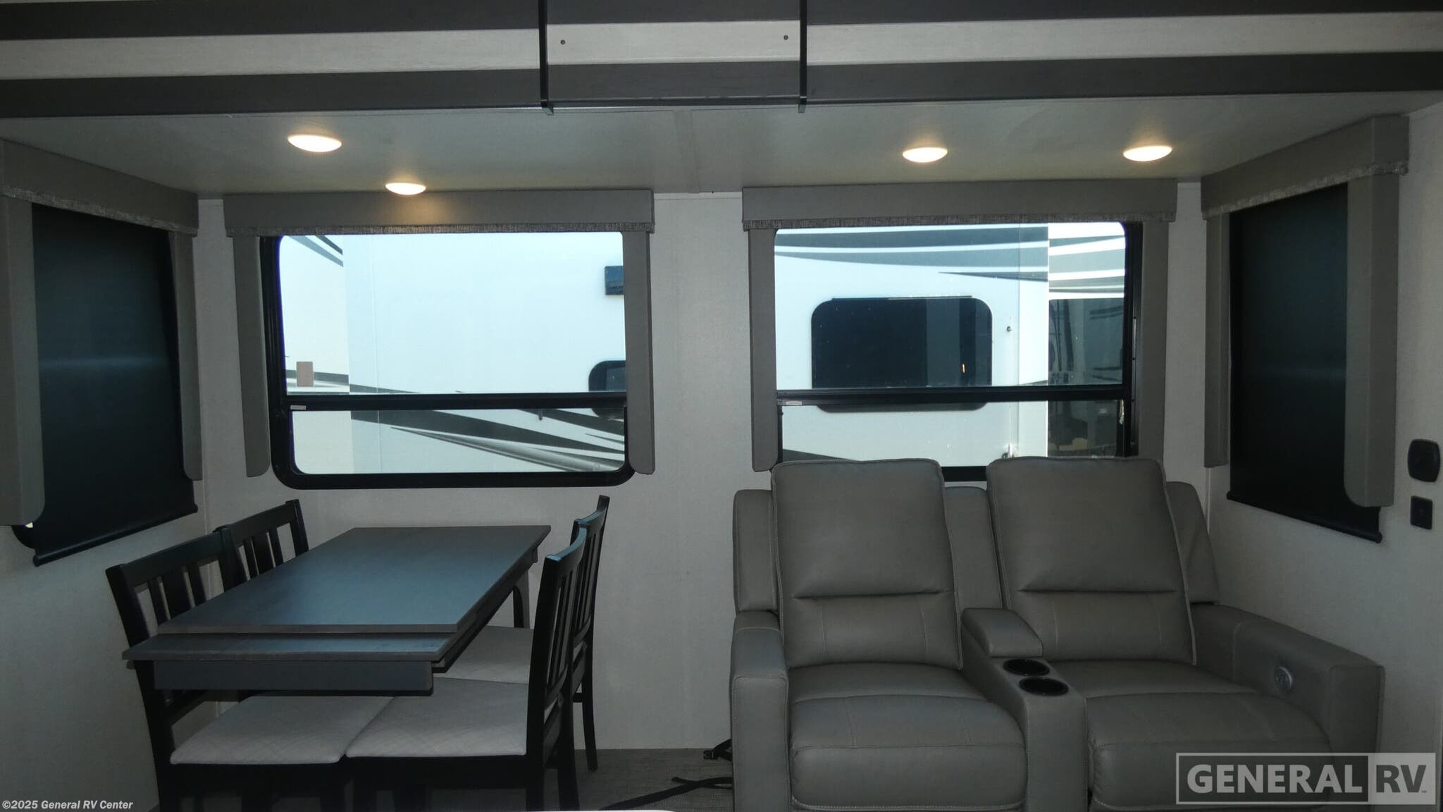 Keystone Sprinter Limited fifth wheel 3190RLS highlights: Floor-To-Ceiling Lighted Pantry Huge Entertainment Center Opposing Slides Full-Reclining Theater Seats Kitchen Island Private Bedroom You will spend each night in exceptional comfort on the king-size bed in the front bedroom of this Sprinter Limited fifth wheel! The bedroom offers you a large wardrobe with mirrored doors, a dresser, a slide out, preparations for a TV, and a closet that has been prepped for a washer/dryer. You'll be right next to the bathroom where you will find a residential shower and linen closet for easy morning routines, and when you step into the main living area, you'll be met with a wide-open space. Grab a bowl from the hutch, some cereal from the floor-to-ceiling lighted pantry, and some milk from the 12-cubic foot refrigerator to enjoy breakfast at the wall-mounted dinette with chairs. Or, if you're wanting to stay comfortable, sit on the 72" sofa and use the end tables. Nothing else says "Camping Made Easy" quite like the Keystone Sprinter Limited fifth wheels and travel trailers do! These luxe RVs offer a premium experience that you'll be dying to be a part of. With unmatched technology, comfort, functionality, and quality, it's no wonder the Sprinter Limited is on everyone's wish list. You can stretch out and stay a while with the 100" wide-body frame with full-width outriggers, and the thermal package keeps you comfortable even when the weather is extreme. Some of the deluxe amenities that have been included on the Sprinter Limited are the Thomas Payne luxury collection furniture, crown molding, Congoleum vinyl flooring with one-piece Dyna Span marine-grade decking, solid-surface countertops, a deep single-basin stainless steel industrial sink, and gas struts for under-bed storage. Each model has also been prepped for 4G LTE and Wi-Fi to keep you up-to-date in the modern world.