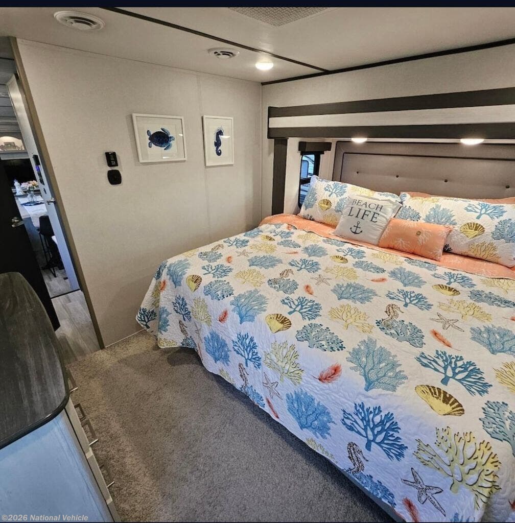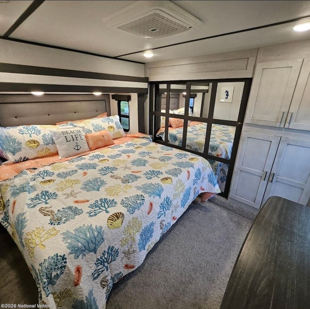 Slides & Awning: The RV has 4 slide-outs to expand the living space and 1 power retractable awning for outdoor comfort.