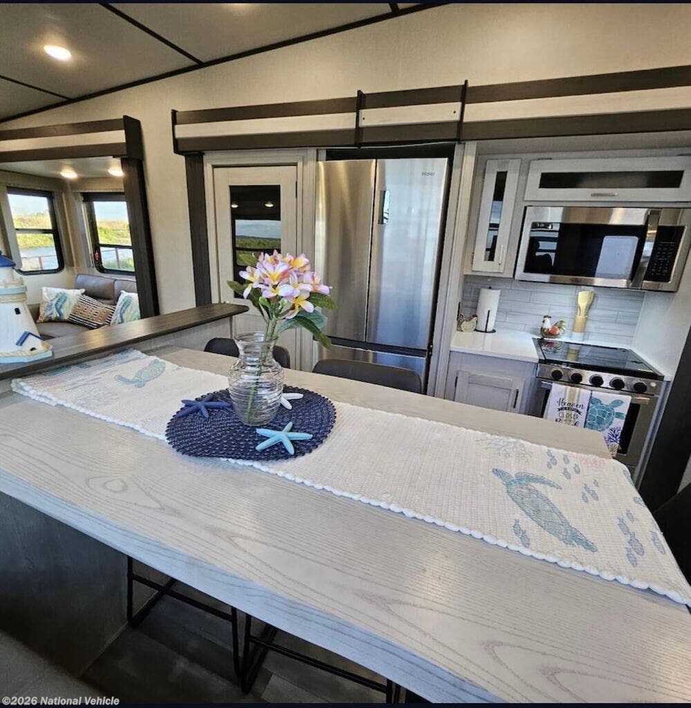The 2022 Keystone Sprinter Limited 3530DEN is a luxurious and well-equipped fifth wheel, ideal for those looking for a spacious, high-end RV with all the comforts of home. From the large kitchen pantry to the theater seating and solar package, this RV is ready for both long-term stays and comfortable travels. Its thoughtful design and numerous features make it an excellent choice for RV enthusiasts.