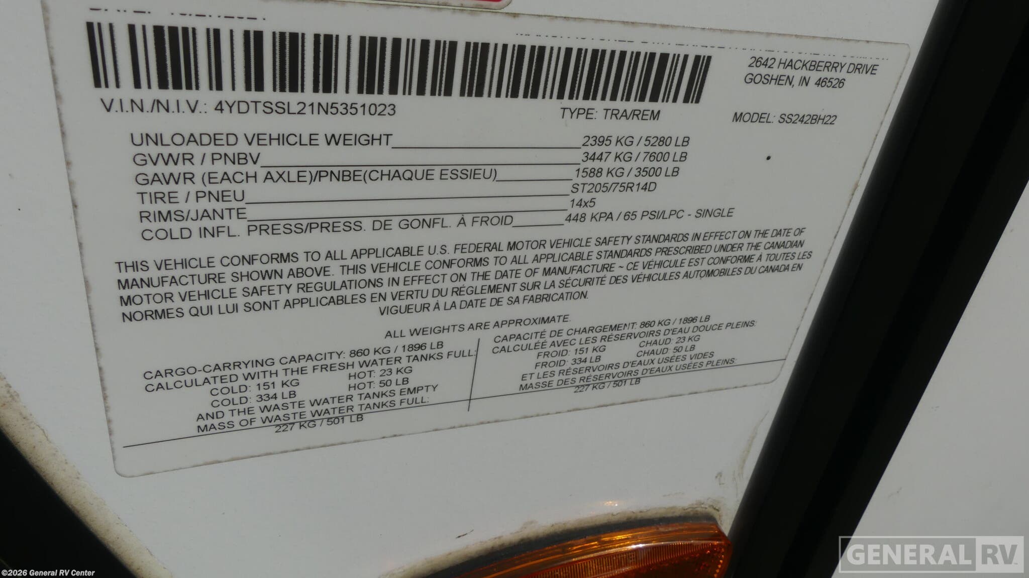 - VIN4YDTSSL21N5351023