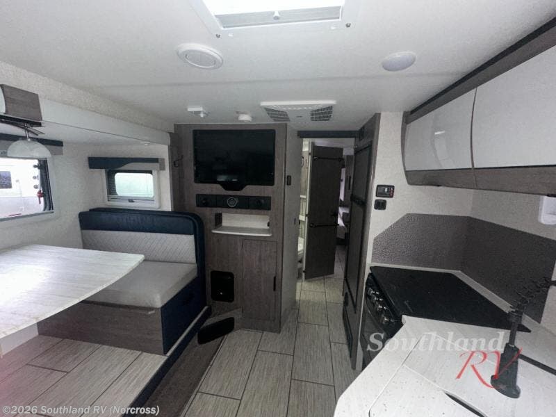 You can take this Lance travel trailer to any vacation you have planned, whether that is a lakeside retreat or a mountainous base camp. The front queen bed is a part of a semi-private bedroom when you shut the privacy divider door. The two swivel rockers provide you with a comfortable place to relax, and they sit across from the 32" smart LCD TV so that you can watch a movie with ease. The booth dinette will serve as an excellent dining location, and it can also provide a bed for another camper if you reposition it. A full bathroom with a dual-pane skylight is essential because it allows you to camp wherever you want without needing public facilities.