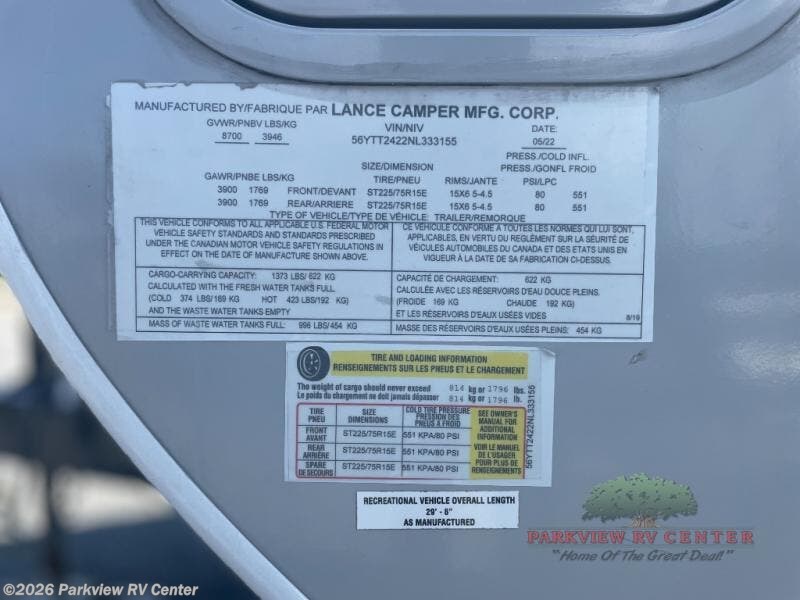 Request More Info on this 2022 Lance Lance Travel Trailers 2445 Offered for sale by Parkview RV Center