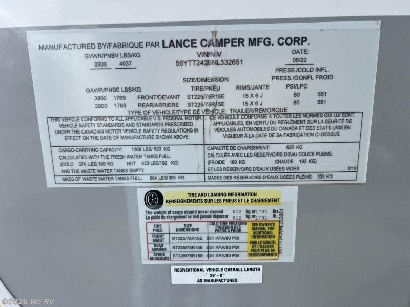 The used 2022 Lance Travel Trailers 2465 is a fantastic option for those seeking quality, comfort, and adventure in one package. Experience the joys of travel, create lasting memories with loved ones, and discover new places, all backed by RV Masters’ commitment to customer satisfaction.
