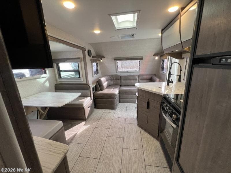 Step inside the Lance 2465, and you’ll be greeted by a bright and welcoming interior packed with features that enhance your camping experience. The open floor plan maximizes living space, providing a comfortable environment where you can relax after a day of exploration. Ample natural light flows through large windows, making the living area feel airy and inviting for cozy evenings.