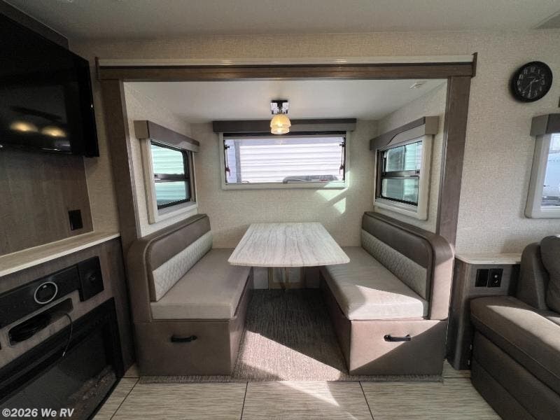 The kitchen in the used Lance 2465 is designed for convenience and creativity. With high-quality appliances, generous counter space, and thoughtful storage solutions, meal prep becomes a delight. Whip up everything from quick breakfasts to gourmet dinners while enjoying the convenience of a well-appointed kitchen. Gather around the dining area to share meals and stories with family and friends, making every meal an opportunity for connection.