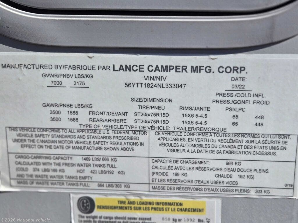 Request More Info on this 2022 Lance Travel Trailer 1985 Offered for sale by National Vehicle