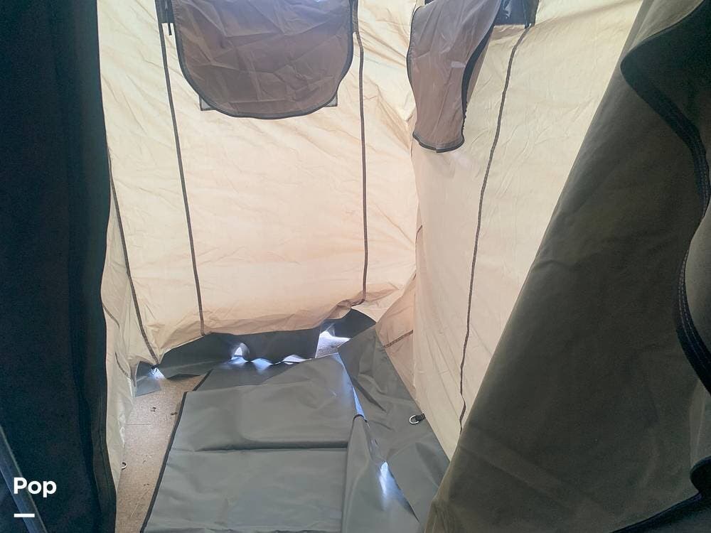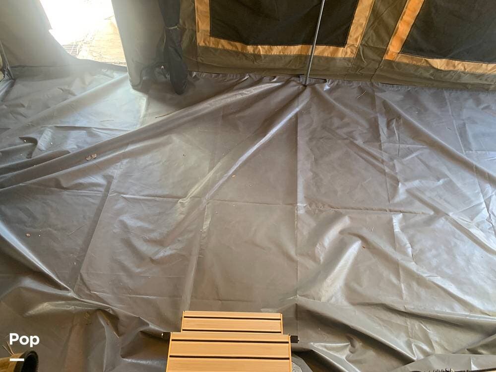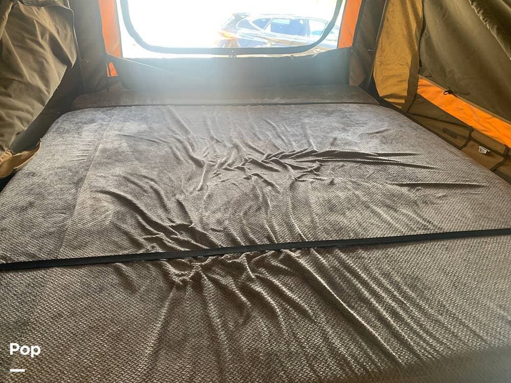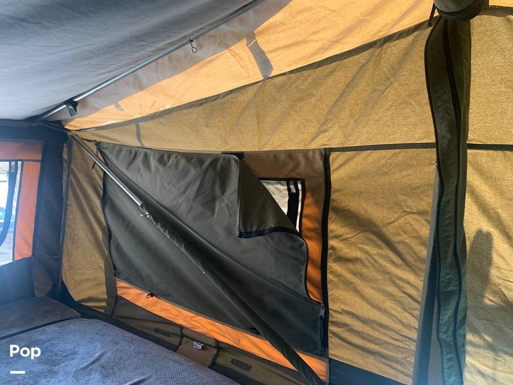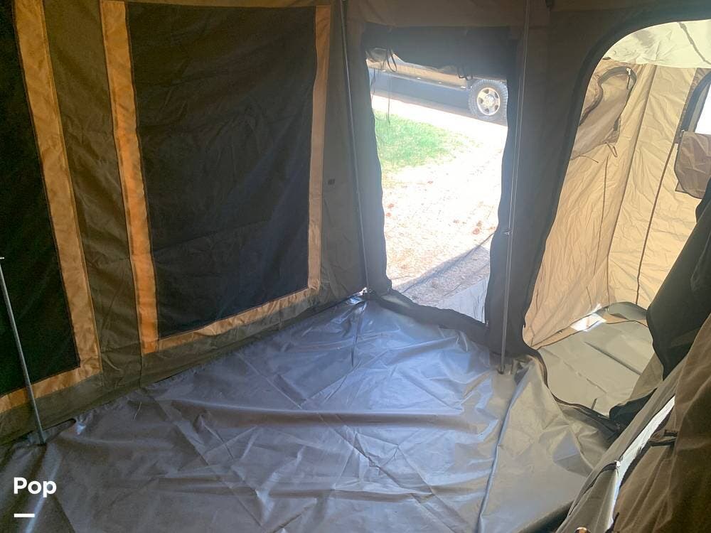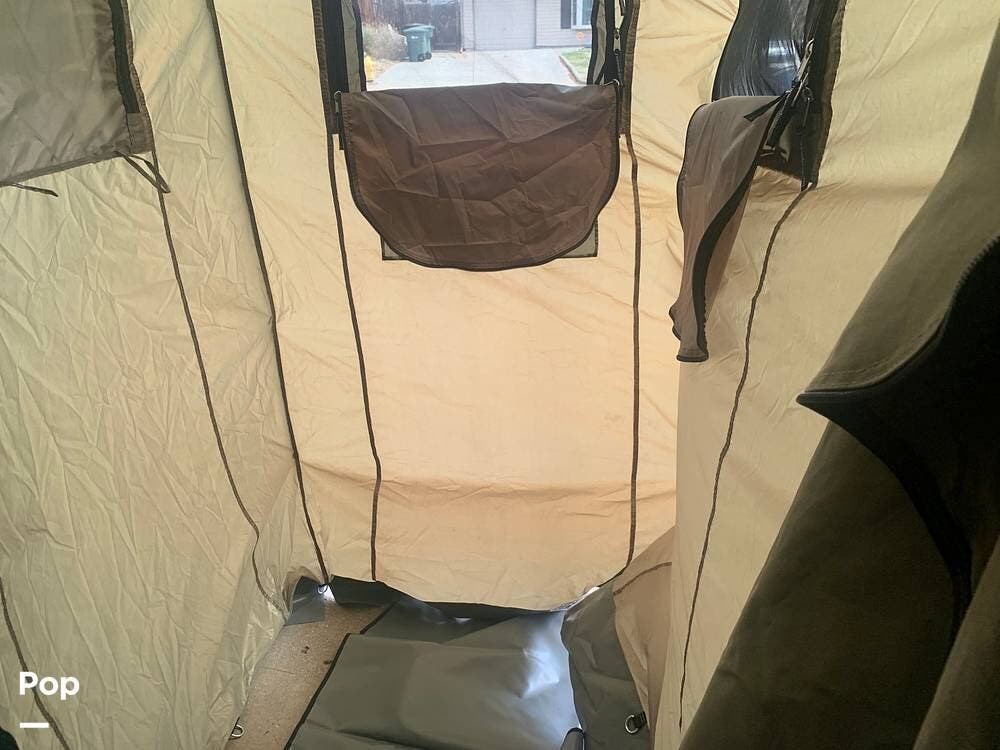 Outfitted with a large tent enclosure, this folding camper expands its footprint, offering a private bathroom area where you can add a portable toilet and shower setup.