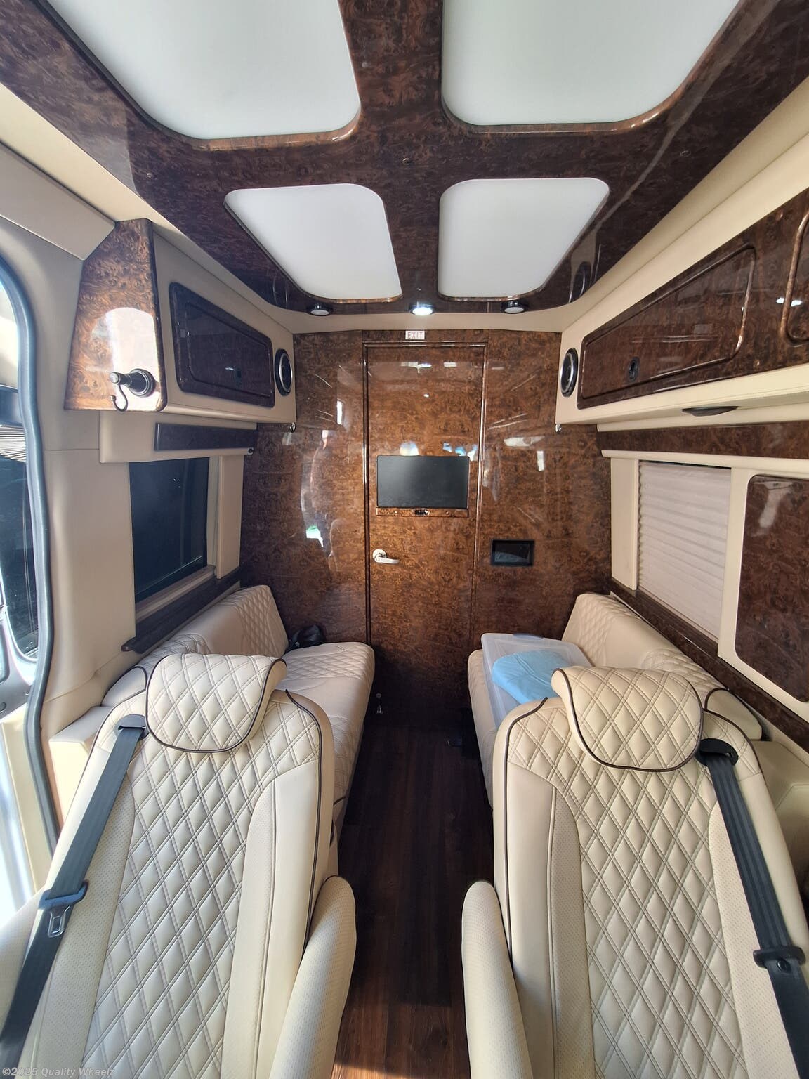 The Mercedes-Benz Sprinter chassis ensures smooth handling, fuel efficiency, and reliability.