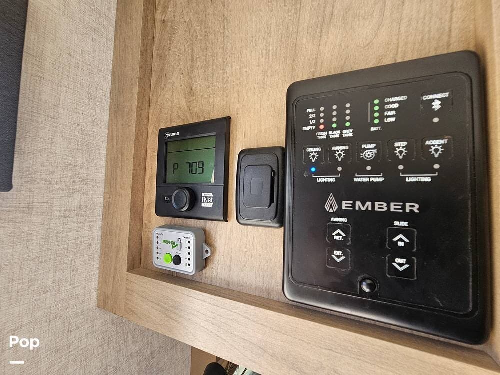 Thoughtful details make this Ember stand out, from its European-style thermal pane windows with integrated shades and screens to its massive pass-through storage compartment. It's prepped for solar and lithium batteries, with a standard Go Power 200W solar panel and a 30-amp MPPT controller already installed -- so boondocking is easy right out of the gate.
