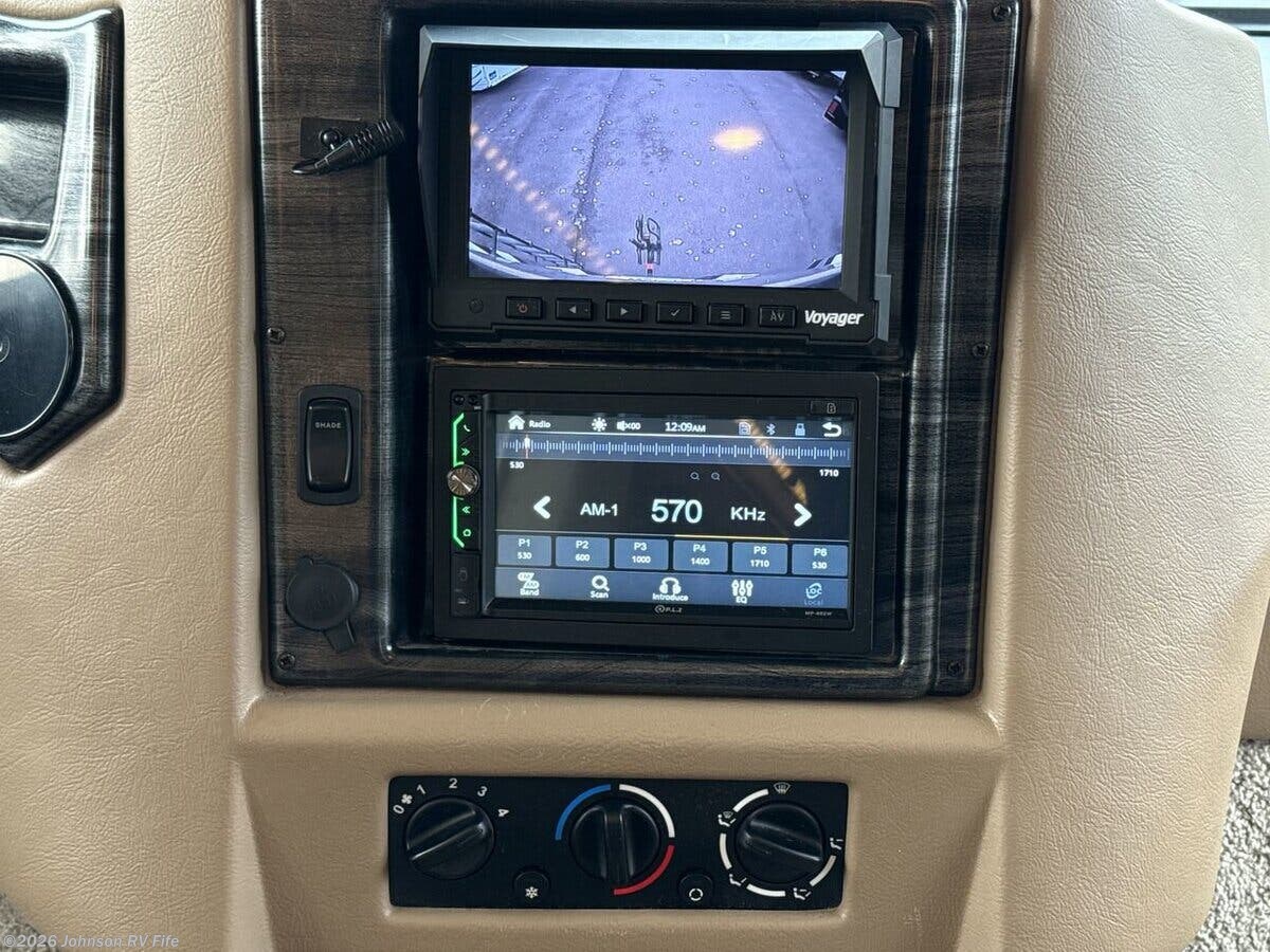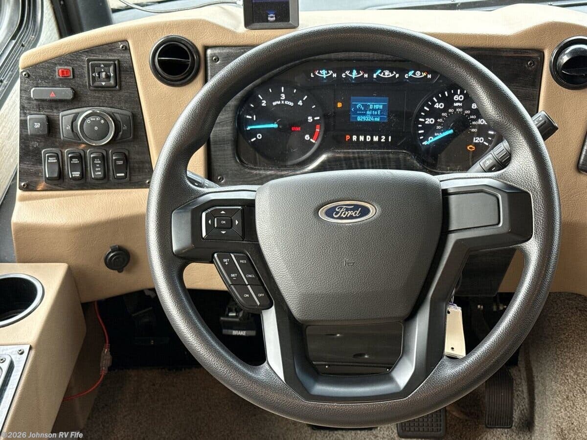 Features Include: 350 HP, Heavy Duty Sway Bars, Aluminum Wheels, Undercoating, Mud Flaps, Dash Heater and AC, Sideview Cameras, Tilt Steering Wheel, Entry Assist Handles, Vinyl Flooring, Carpeted Slideout, Galley Mini Blinds, Stainless Steel Sink, Cable TV Hookup, Bed Top Lifts, Bedroom Carpeting, Nightstands, Samsung LED TV, Dresser Drawers, Vinyl Flooring, Mini Blinds, Medicine Cabinet, ABS Shower Surround, Shower Skylight, 5.5 Onan Generator, 50-Amp Service Cord, 45-Amp Converter, 6-Gal DSI Hot Water, Water Heater Bypass, Black Tank Rinse, Hydraulic Leveling