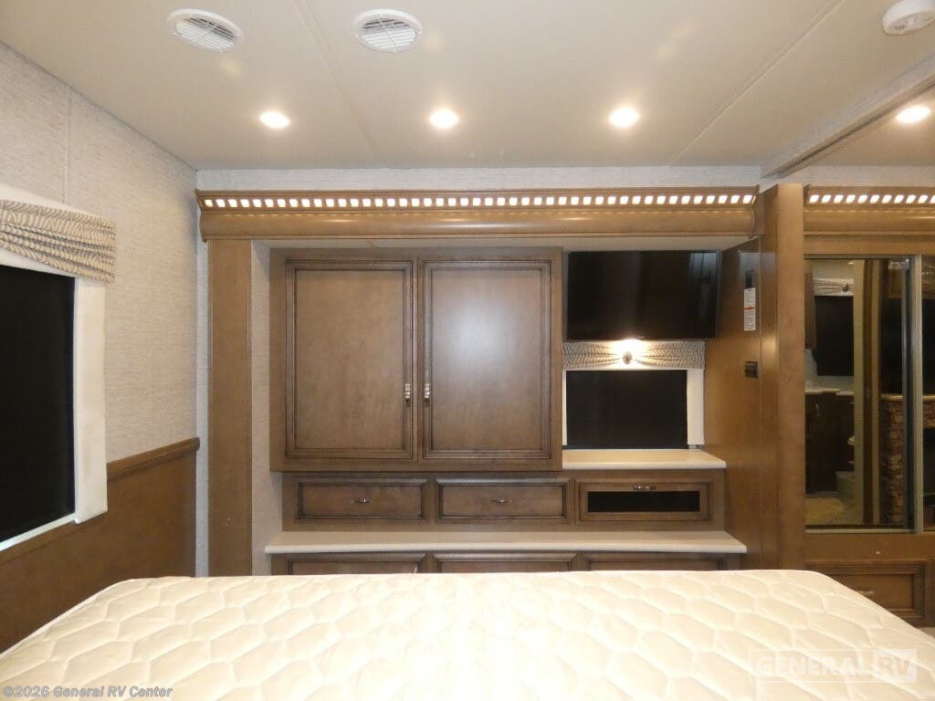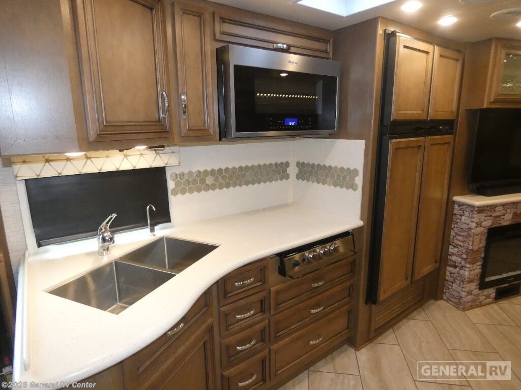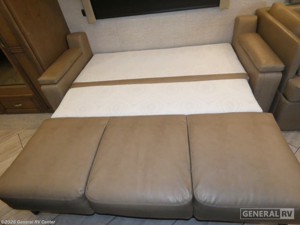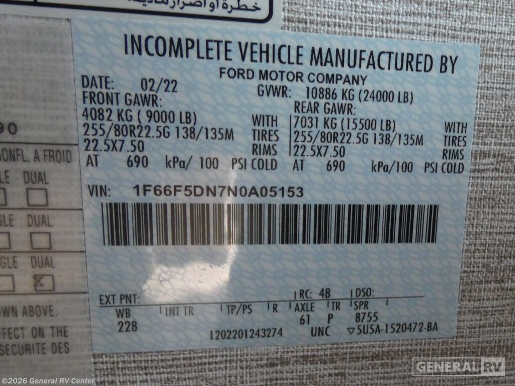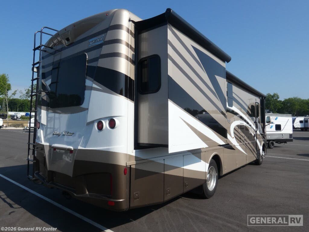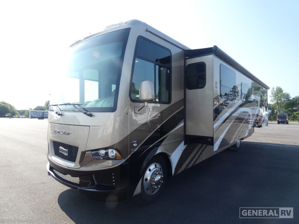 Experience the open road in style with the 2022 Newmar Bay Star 340. This elegant motorhome is designed for those who seek both luxury and functionality in their travels. At nearly 35 feet, it offers a spacious and inviting interior, perfect for families or groups of up to seven. The front living area welcomes you with a Visionary V2 trifold sofa and a booth dinette, both convertible for additional sleeping space. The center kitchen, equipped with a full-size electric refrigerator and a three-burner cooktop, offers the perfect setup for culinary adventures, complemented by convection cooking for added convenience. Retreat to the rear bedroom, where a king-sized bed promises restful nights. The room is thoughtfully designed with ample storage, including a wardrobe with sliding mirror doors and overhead compartments. The center bath features a 36" x 36" shower with a sleek plastic and glass design, ensuring comfort and style. Outside, enjoy the 21 ft. powered retractable awning, perfect for relaxing in the shade. Built on a robust Ford F53 chassis, with a 350 horsepower engine, this RV combines power with comfort, ensuring your journey is as enjoyable as your destination. For more details or to see this beauty in person, visit your nearest General RV dealership.