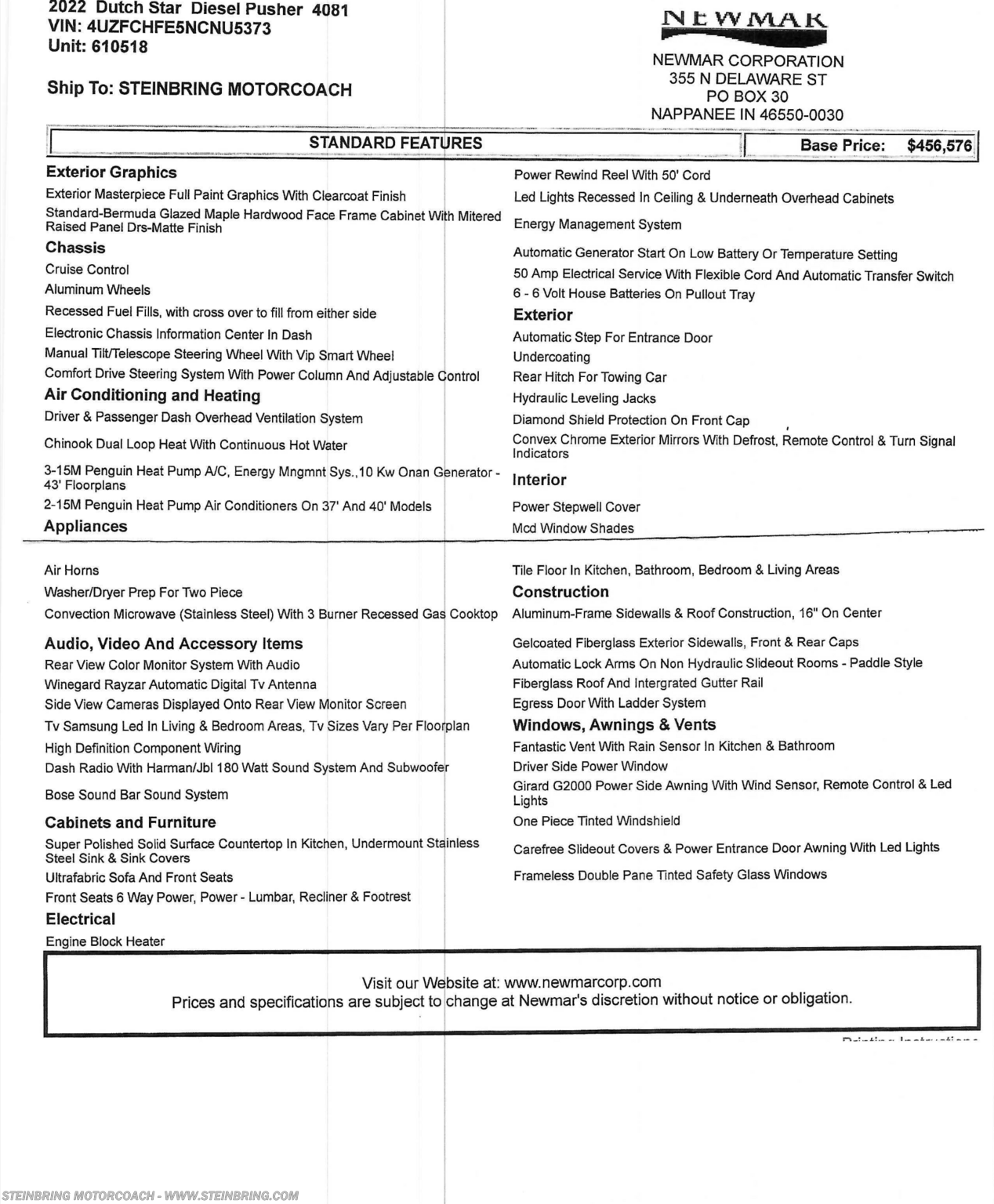 Request More Info on this 2022 Newmar Dutch Star 4081 Offered for sale by Steinbring Motorcoach