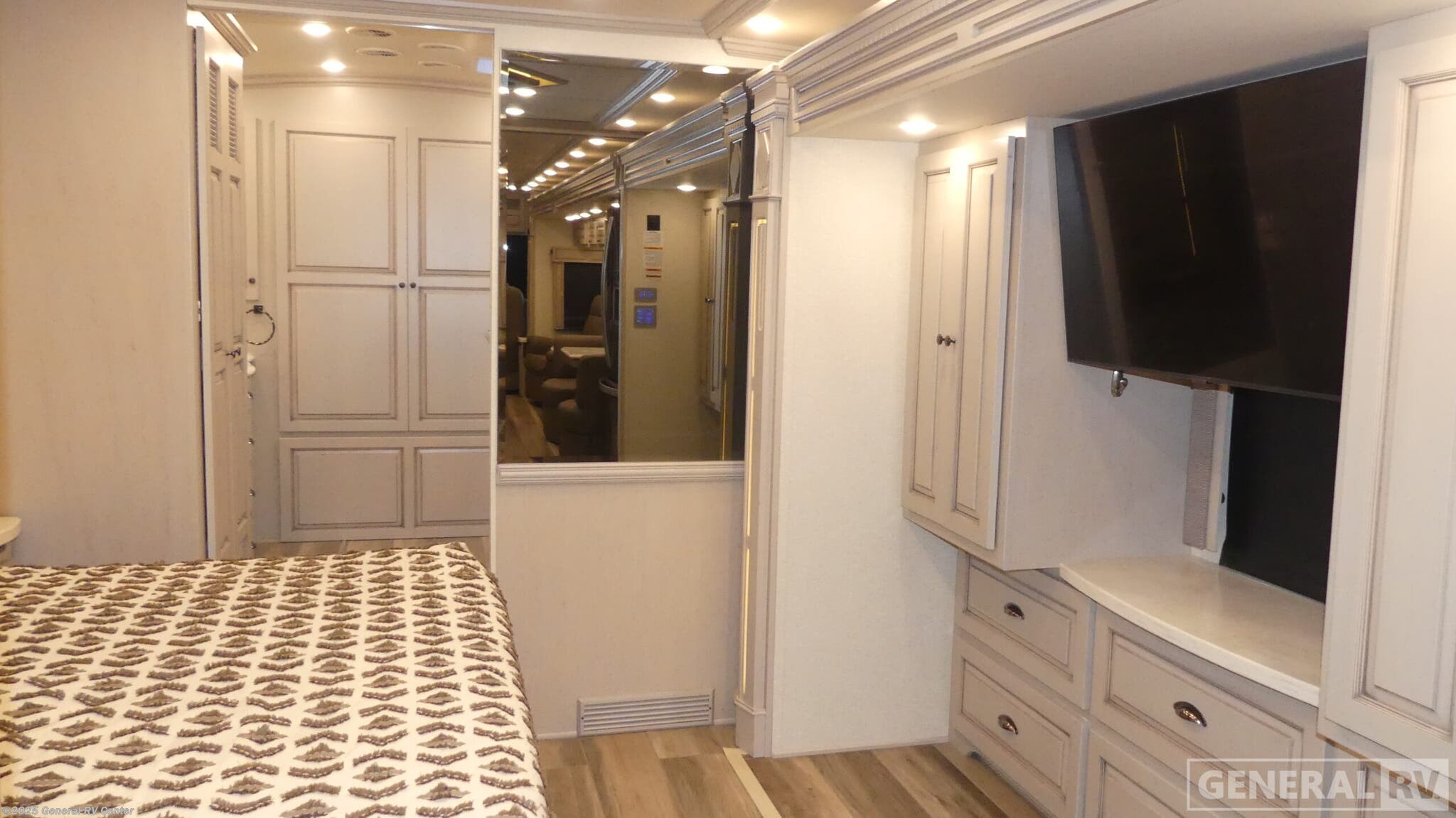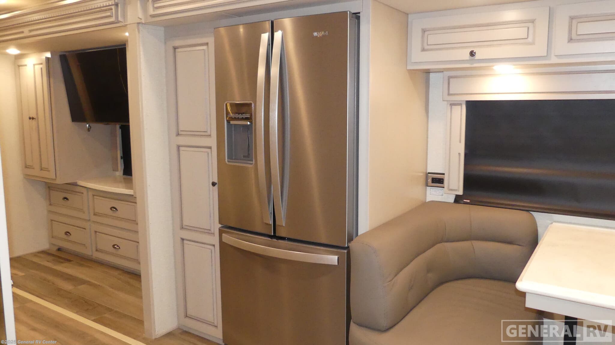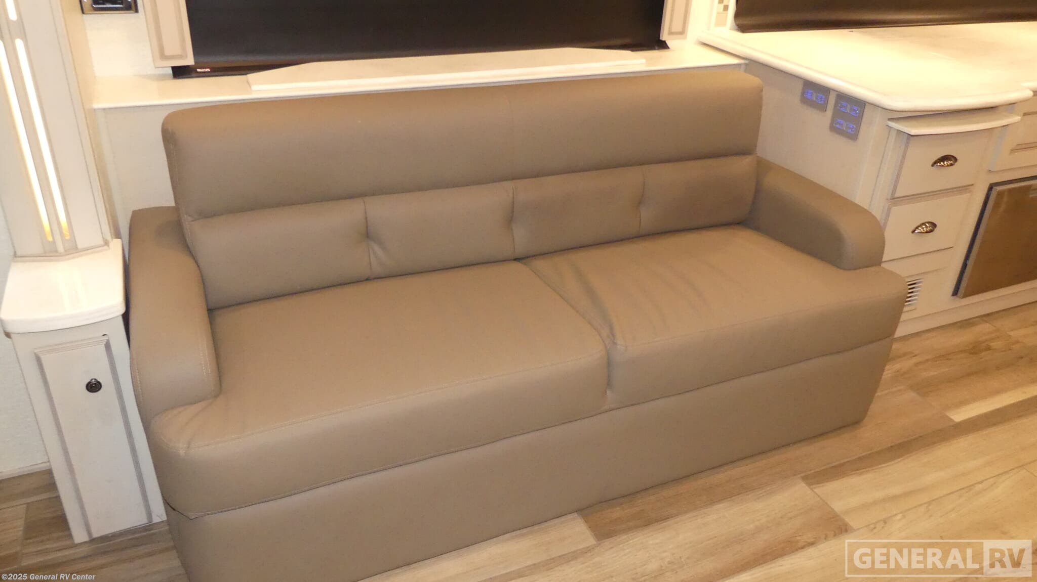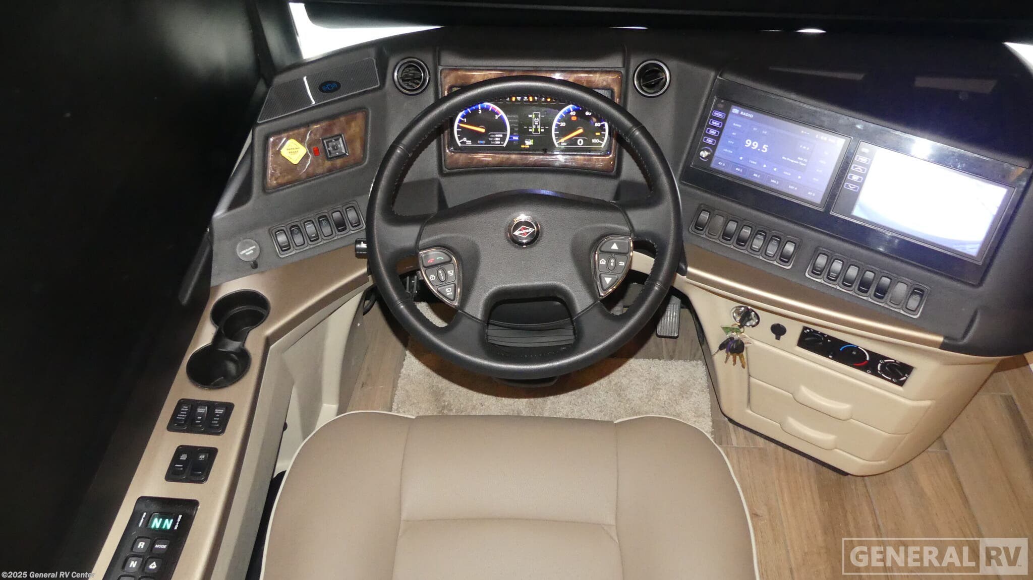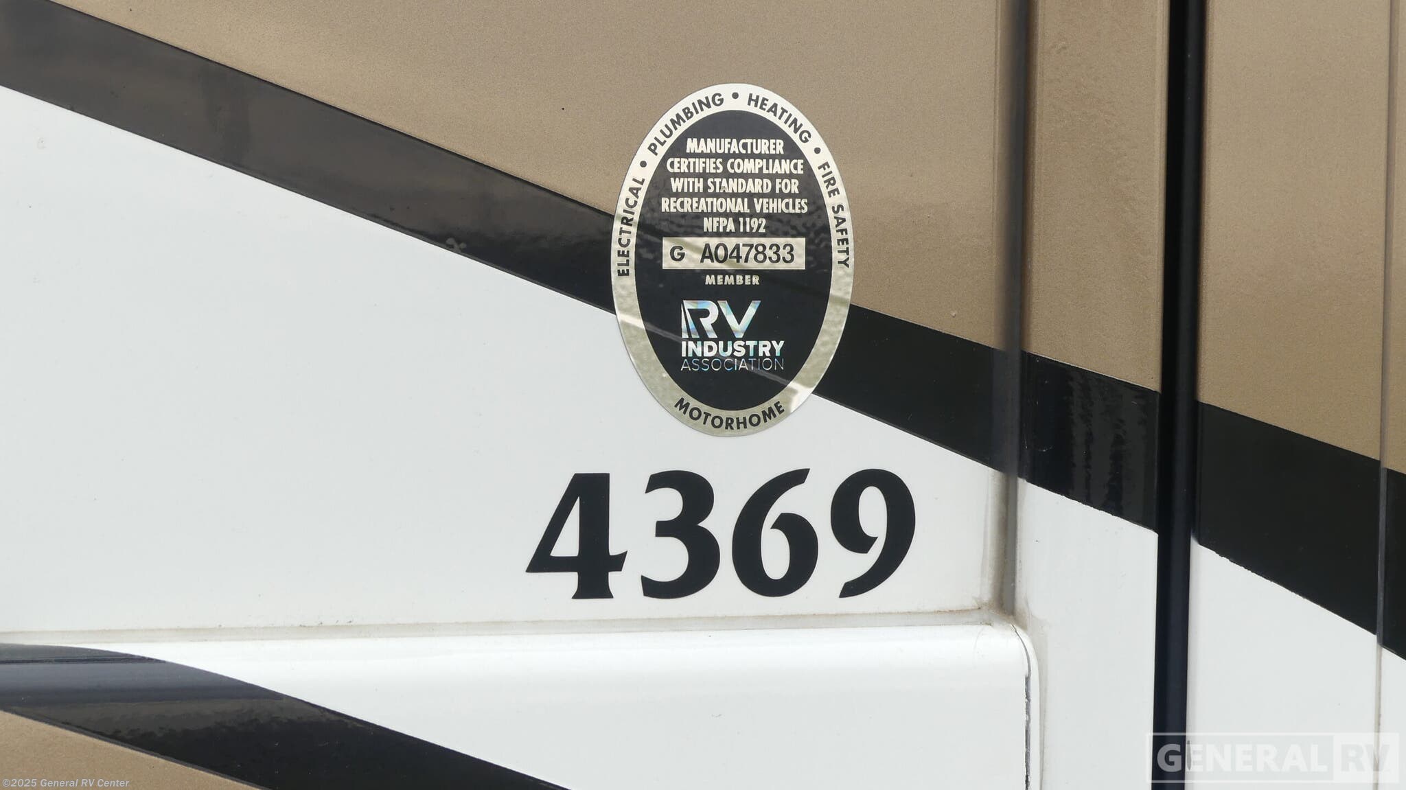 Experience the pinnacle of luxury travel with the 2022 Newmar Dutch Star 4369. This stunning motorhome is designed for those who appreciate the finer things in life, offering a spacious and sophisticated retreat on wheels. At nearly 44 feet in length, this Dutch Star boasts a beautifully appointed interior with three slide-outs, creating an expansive living space that feels just like home. The front living area features plush seating, perfect for relaxing or entertaining, with a retractable LED TV for your viewing pleasure. The center kitchen is a chef's delight, equipped with a full-size electric refrigerator, convection cooking, and a three-burner cooktop, ensuring you have everything you need to prepare gourmet meals on the road. The master suite is an oasis of comfort, featuring a king-sized bed and ample storage. The en-suite bath offers a luxurious shower and high-end finishes, providing a spa-like experience. With sleeping accommodations for up to six, including convertible options, this RV is perfect for family adventures or hosting guests. The powered retractable awning extends your living space outdoors, while the Freightliner XC-Series chassis and Cummins I6 Diesel Pusher engine provide a smooth and powerful ride. Discover the freedom of the open road without sacrificing comfort or style. For more information or to see this beauty in person, visit your nearest General RV dealership.