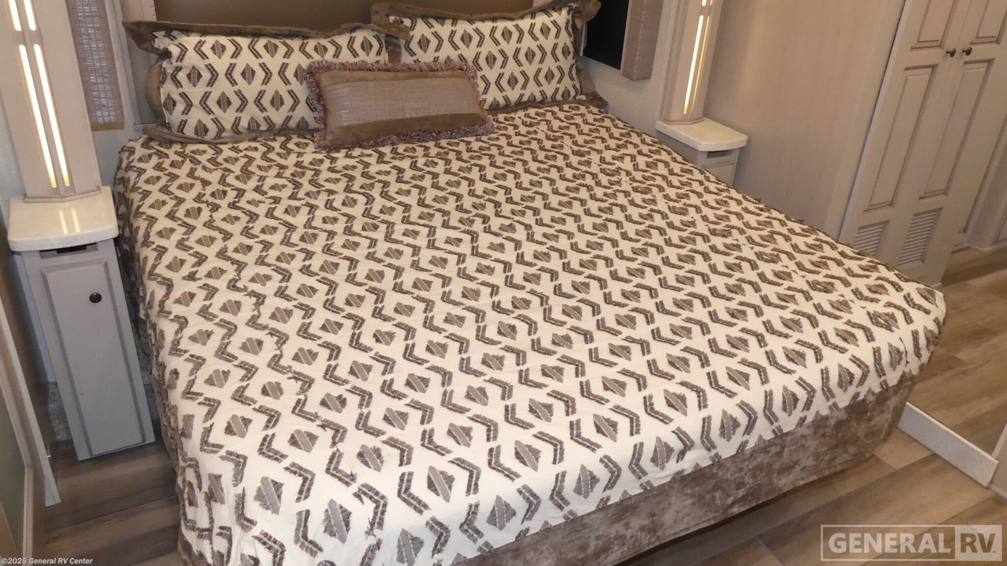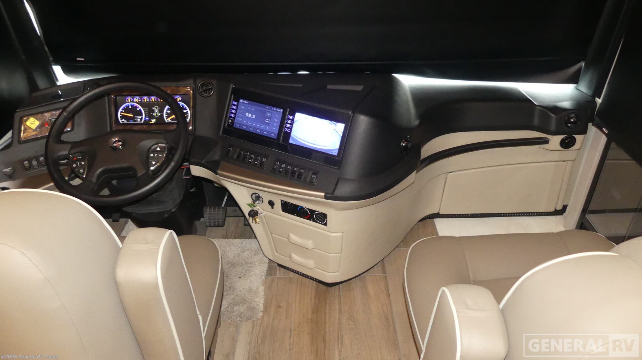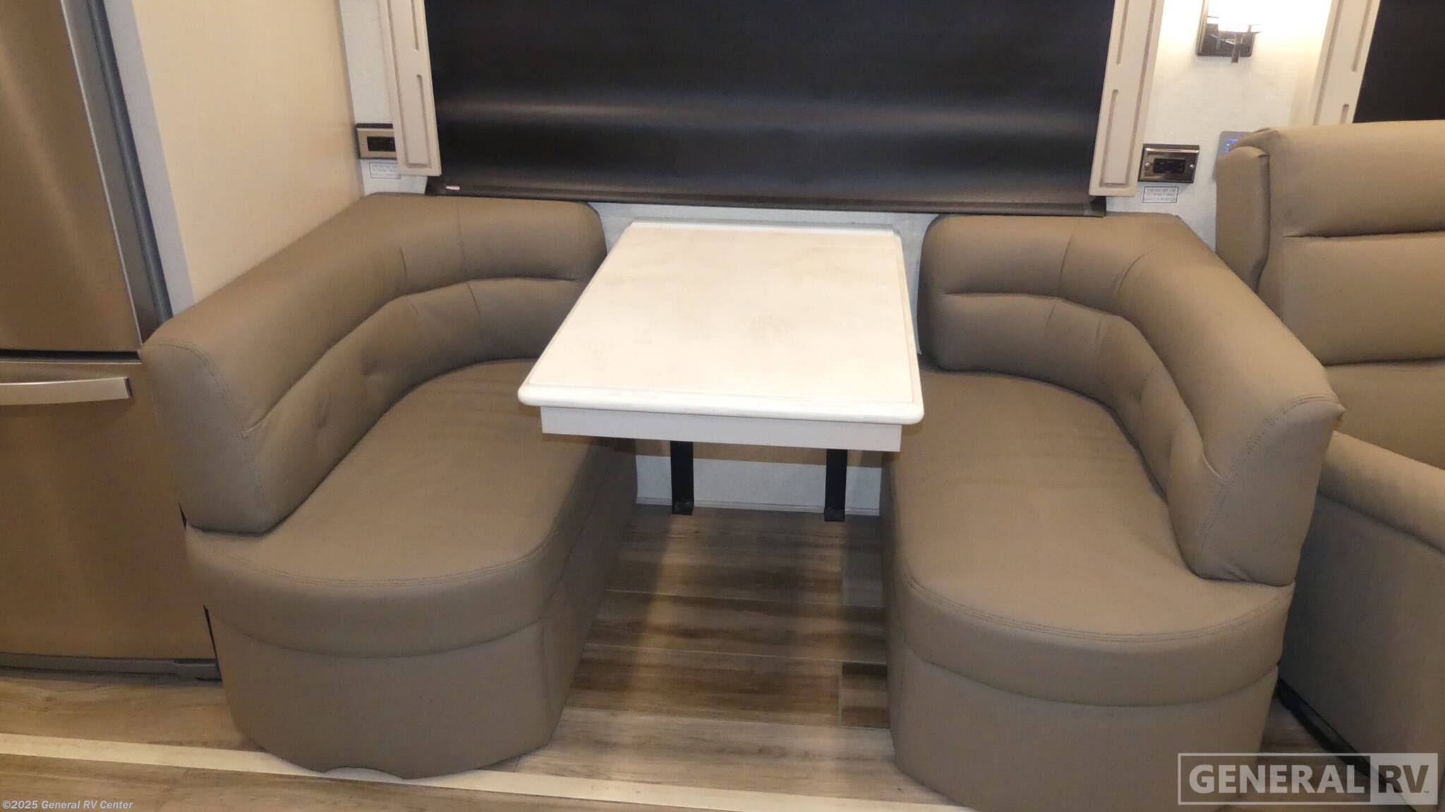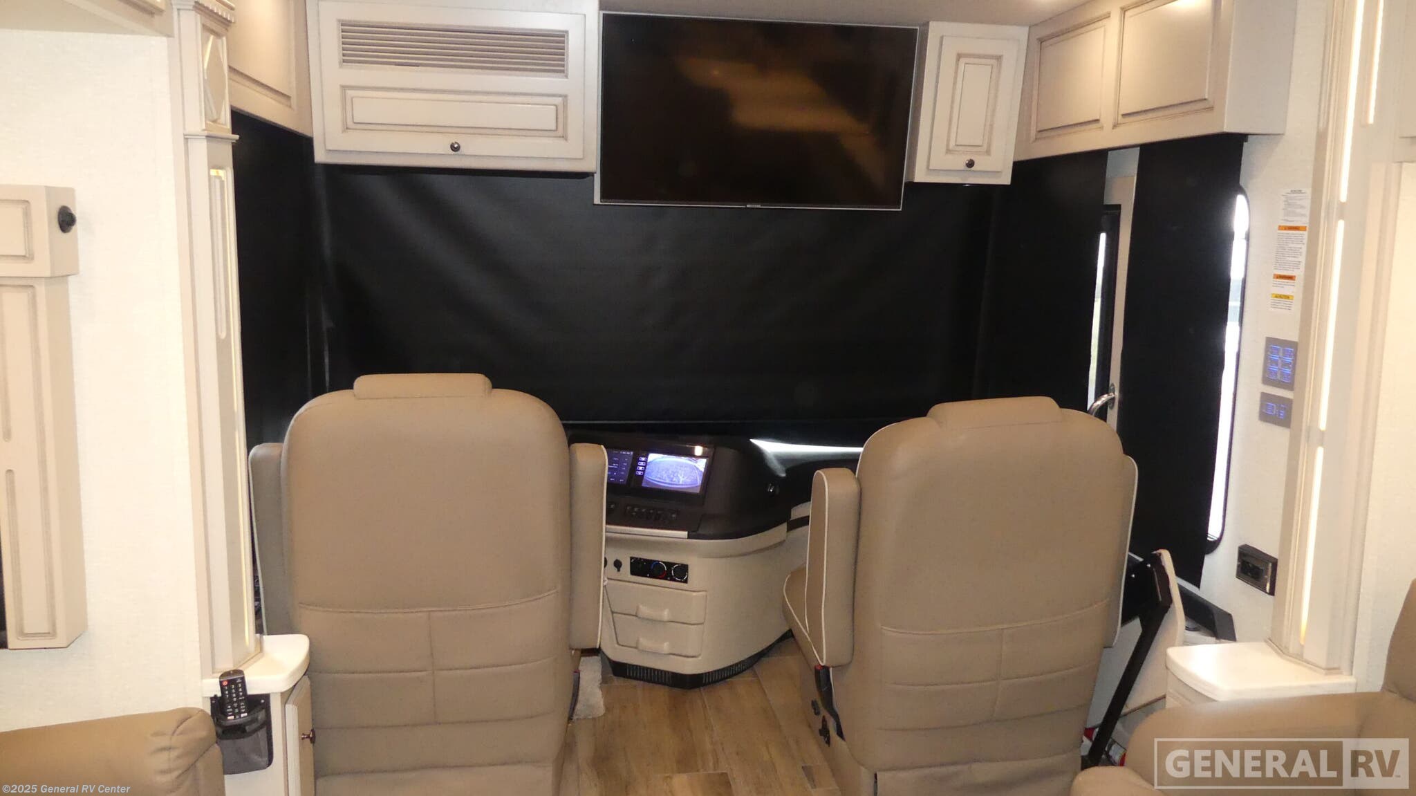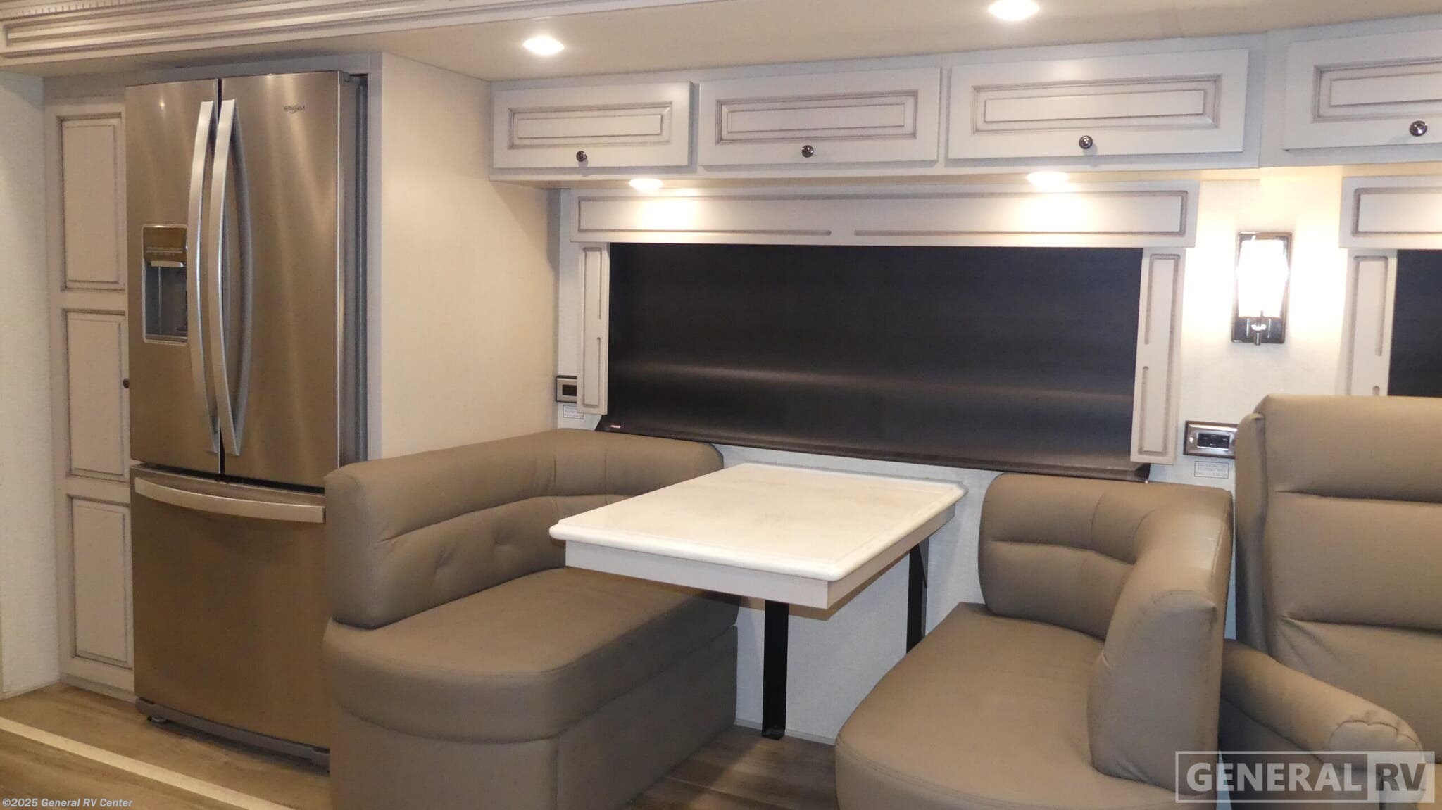 Experience the pinnacle of luxury travel with the 2022 Newmar Dutch Star 4369. This stunning motorhome is designed for those who appreciate the finer things in life, offering a spacious and sophisticated retreat on wheels. At nearly 44 feet in length, this Dutch Star boasts a beautifully appointed interior with three slide-outs, creating an expansive living space that feels just like home. The front living area features plush seating, perfect for relaxing or entertaining, with a retractable LED TV for your viewing pleasure. The center kitchen is a chef's delight, equipped with a full-size electric refrigerator, convection cooking, and a three-burner cooktop, ensuring you have everything you need to prepare gourmet meals on the road. The master suite is an oasis of comfort, featuring a king-sized bed and ample storage. The en-suite bath offers a luxurious shower and high-end finishes, providing a spa-like experience. With sleeping accommodations for up to six, including convertible options, this RV is perfect for family adventures or hosting guests. The powered retractable awning extends your living space outdoors, while the Freightliner XC-Series chassis and Cummins I6 Diesel Pusher engine provide a smooth and powerful ride. Discover the freedom of the open road without sacrificing comfort or style. For more information or to see this beauty in person, visit your nearest General RV dealership.