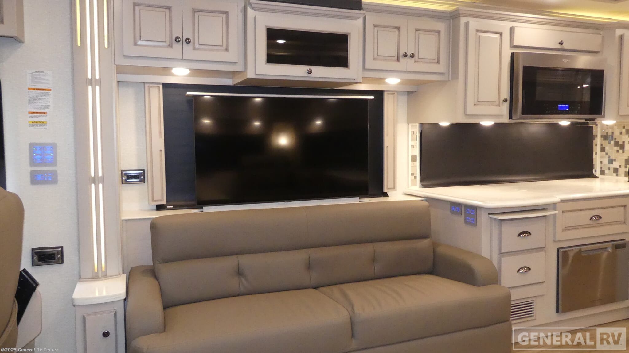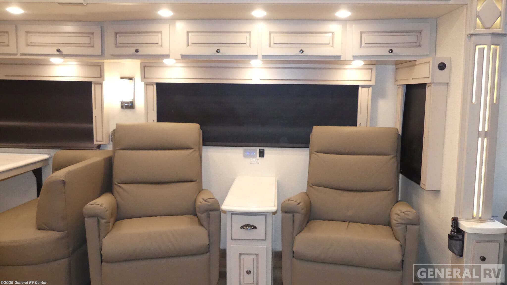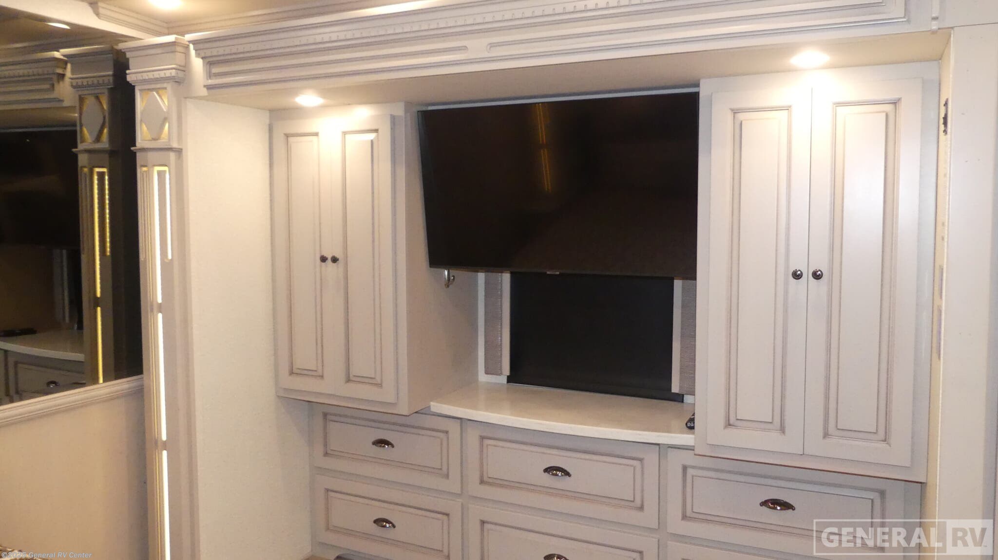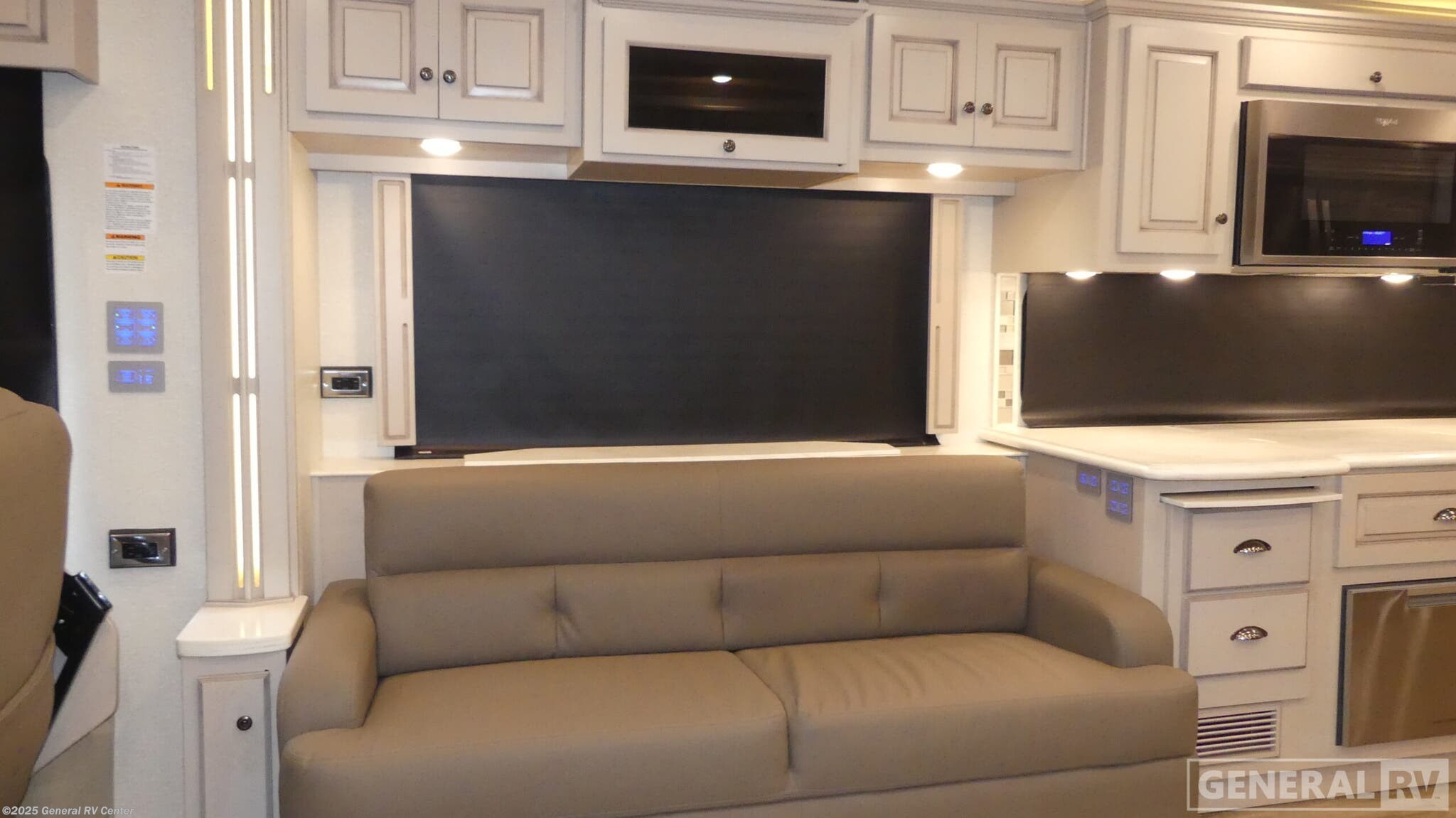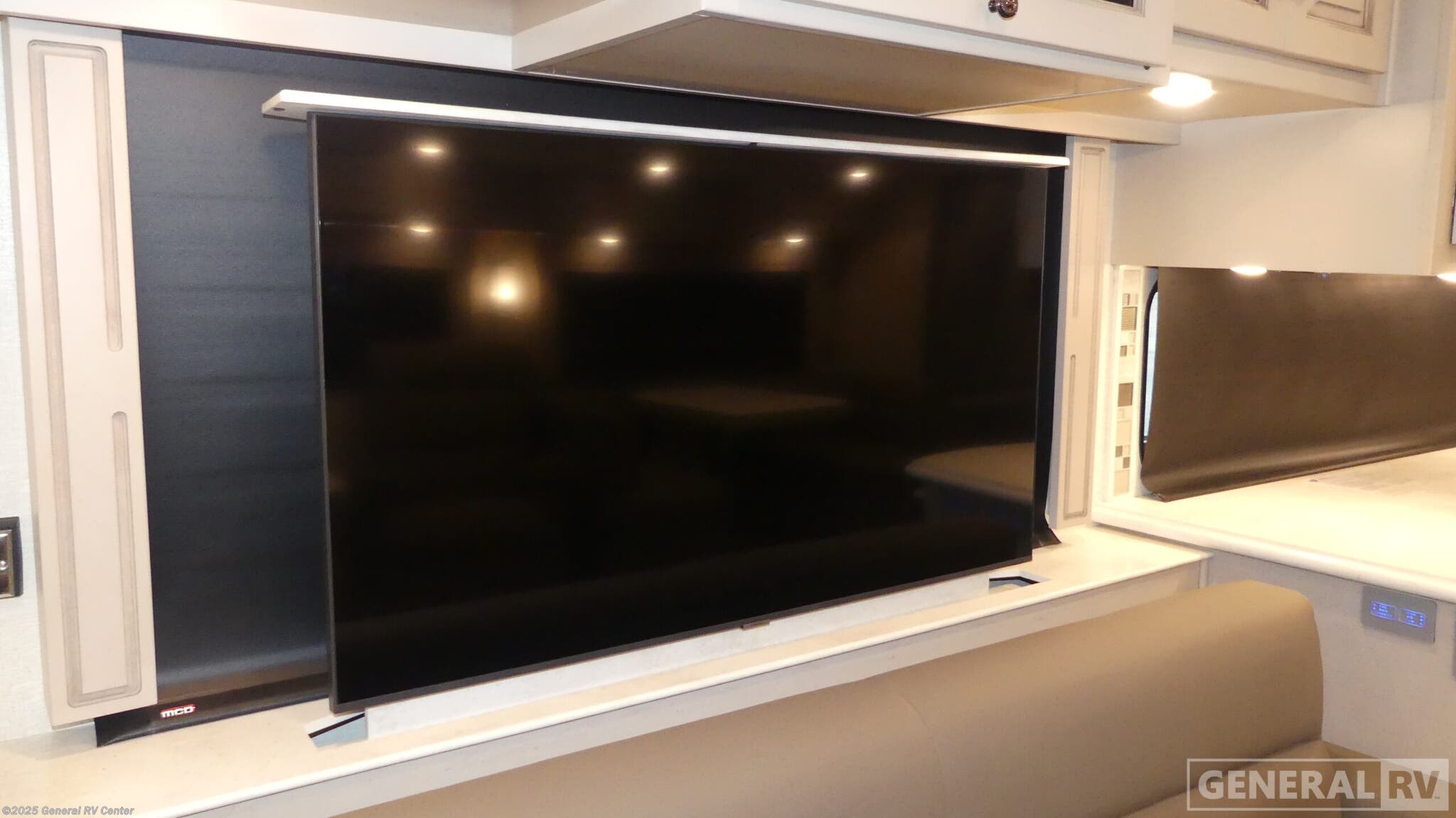 Experience the pinnacle of luxury travel with the 2022 Newmar Dutch Star 4369. This stunning motorhome is designed for those who appreciate the finer things in life, offering a spacious and sophisticated retreat on wheels. At nearly 44 feet in length, this Dutch Star boasts a beautifully appointed interior with three slide-outs, creating an expansive living space that feels just like home. The front living area features plush seating, perfect for relaxing or entertaining, with a retractable LED TV for your viewing pleasure. The center kitchen is a chef's delight, equipped with a full-size electric refrigerator, convection cooking, and a three-burner cooktop, ensuring you have everything you need to prepare gourmet meals on the road. The master suite is an oasis of comfort, featuring a king-sized bed and ample storage. The en-suite bath offers a luxurious shower and high-end finishes, providing a spa-like experience. With sleeping accommodations for up to six, including convertible options, this RV is perfect for family adventures or hosting guests. The powered retractable awning extends your living space outdoors, while the Freightliner XC-Series chassis and Cummins I6 Diesel Pusher engine provide a smooth and powerful ride. Discover the freedom of the open road without sacrificing comfort or style. For more information or to see this beauty in person, visit your nearest General RV dealership.