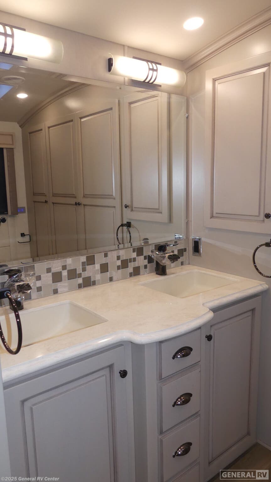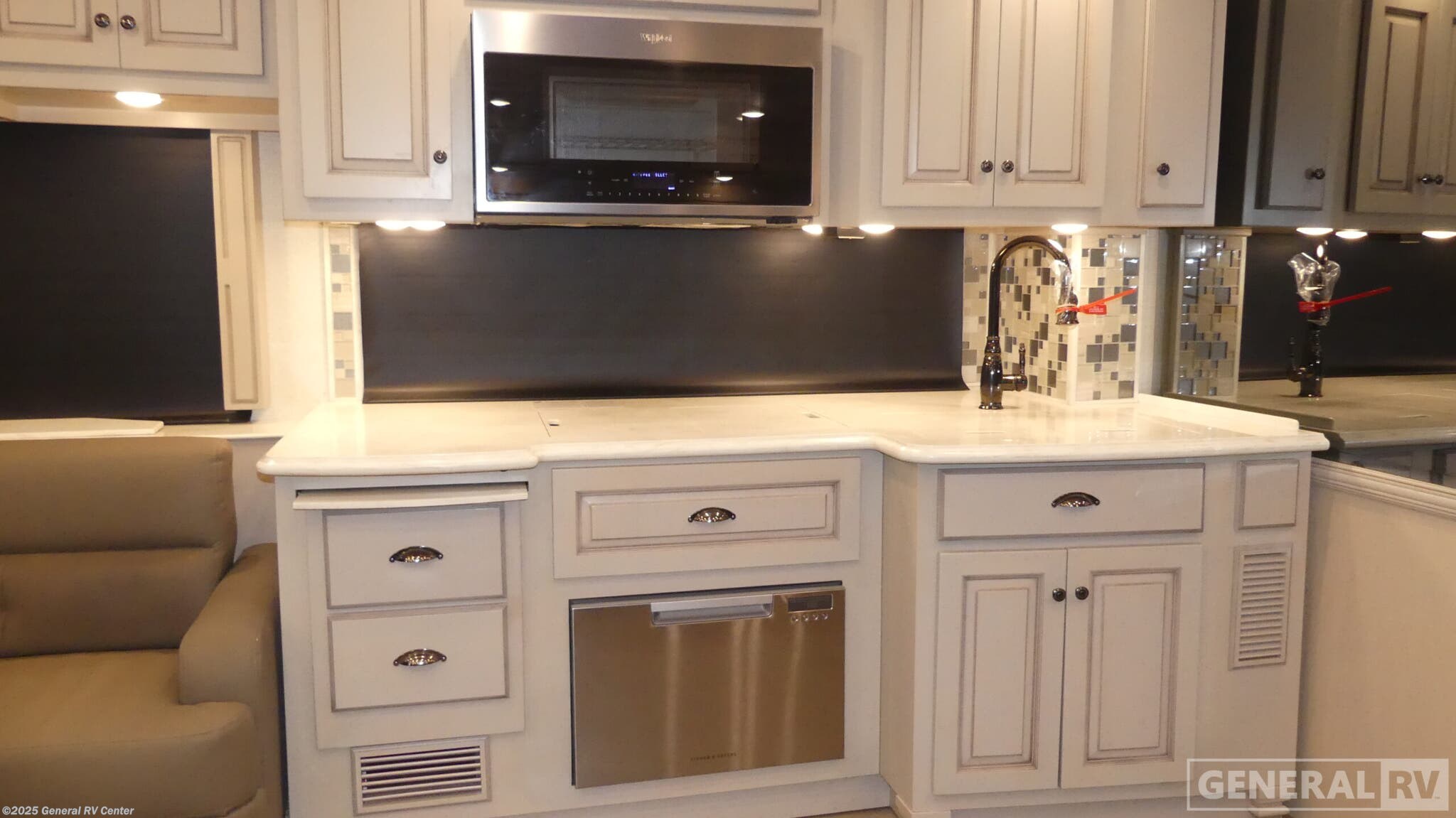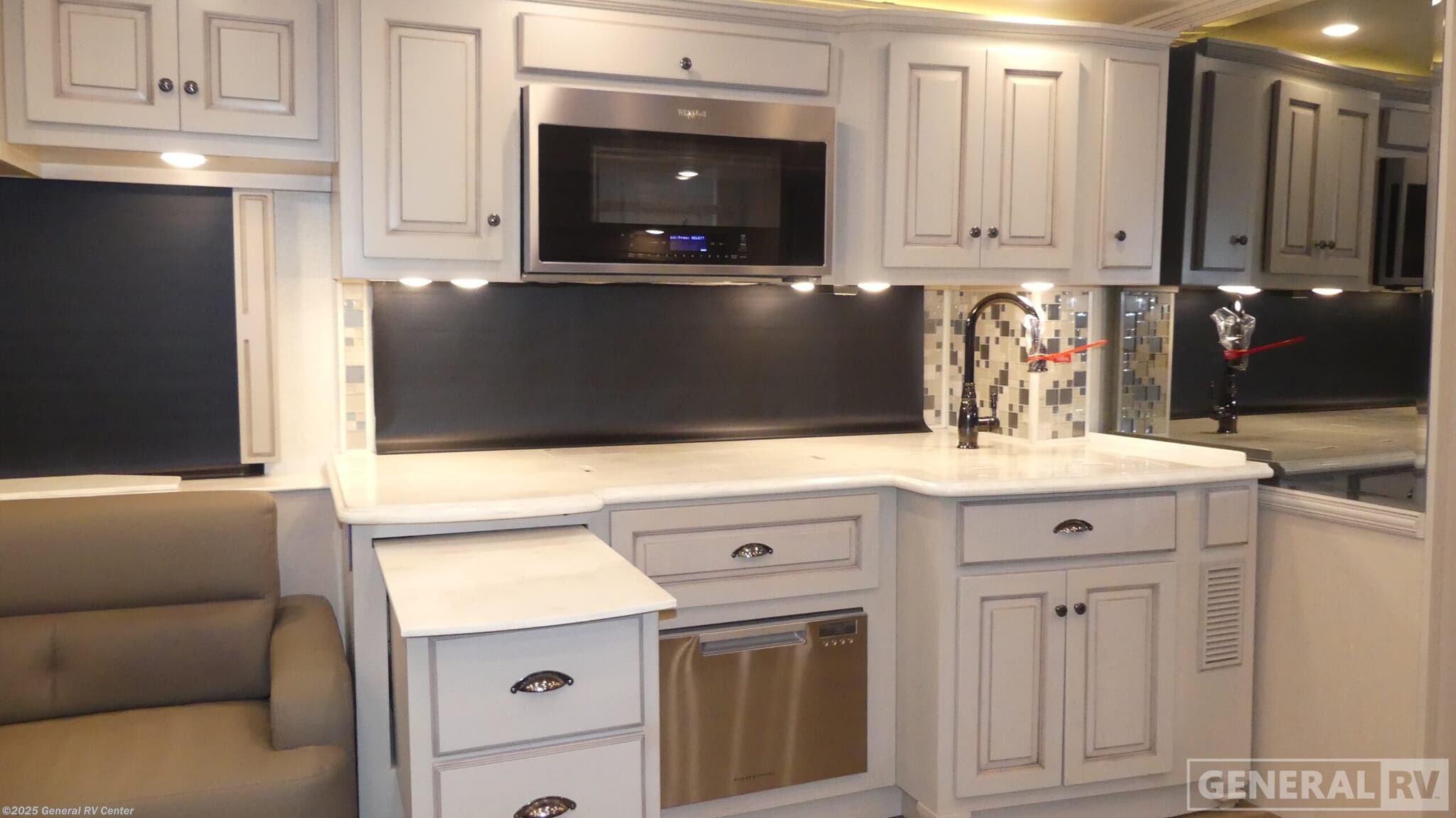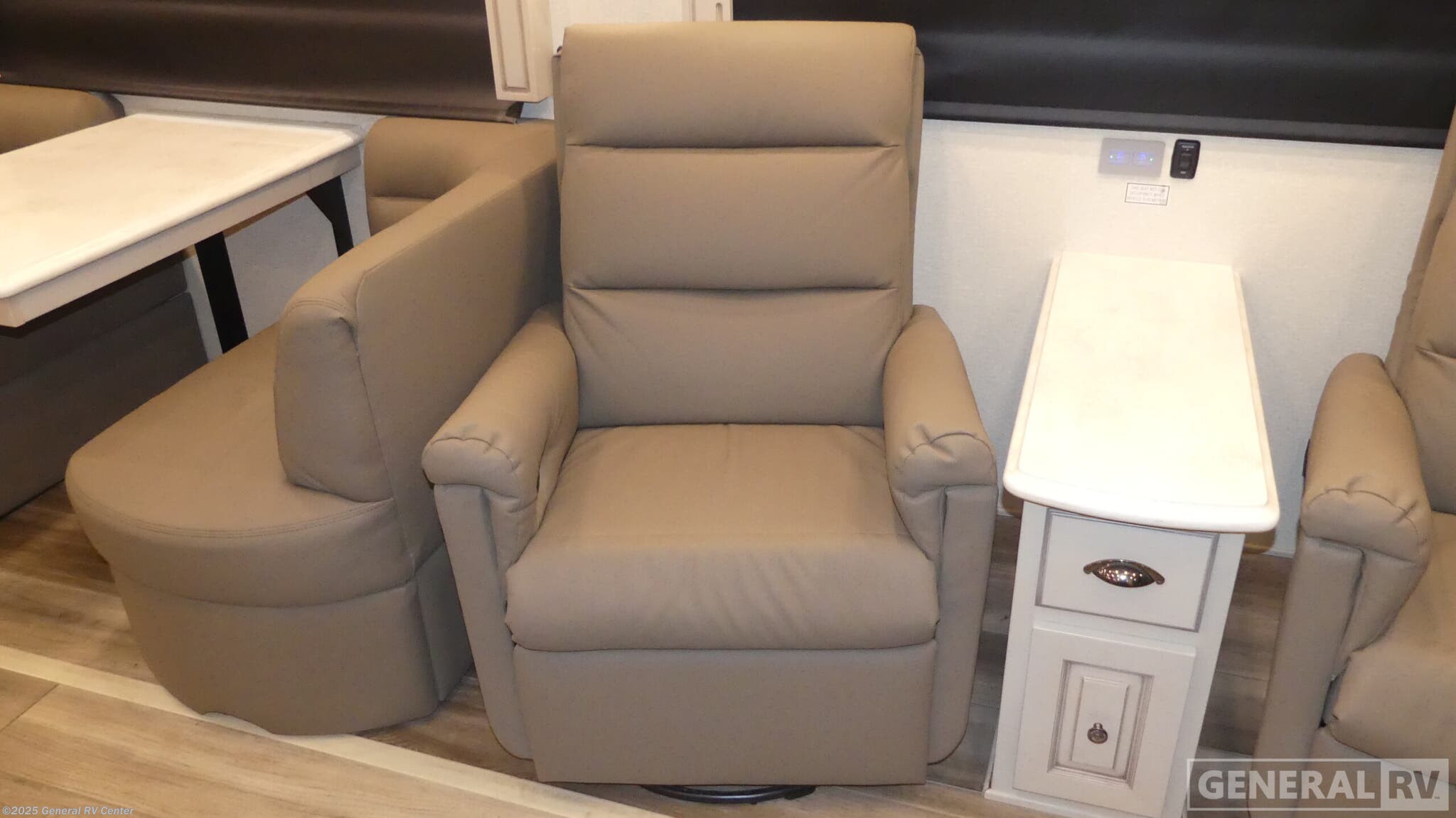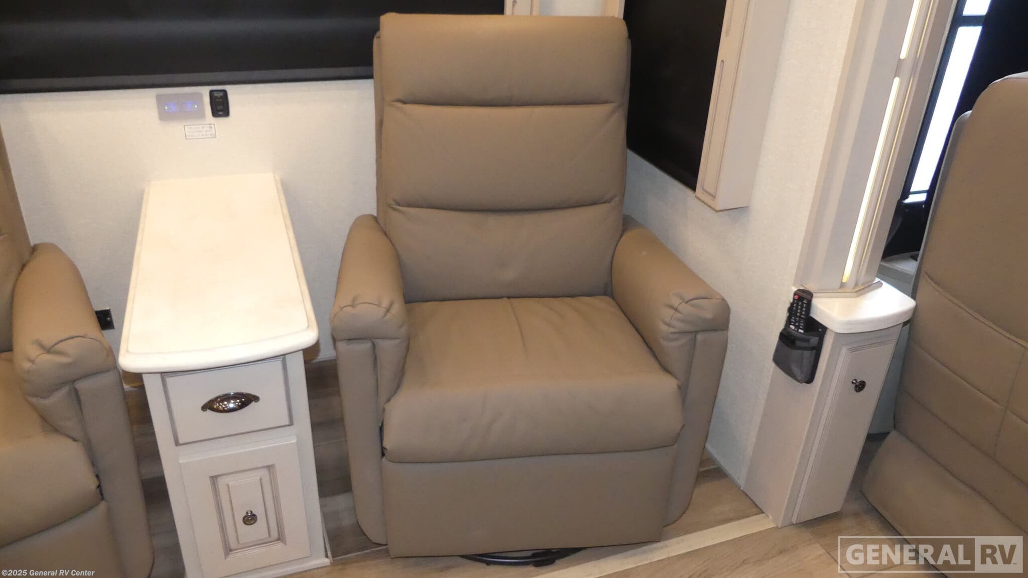 Experience the pinnacle of luxury travel with the 2022 Newmar Dutch Star 4369. This stunning motorhome is designed for those who appreciate the finer things in life, offering a spacious and sophisticated retreat on wheels. At nearly 44 feet in length, this Dutch Star boasts a beautifully appointed interior with three slide-outs, creating an expansive living space that feels just like home. The front living area features plush seating, perfect for relaxing or entertaining, with a retractable LED TV for your viewing pleasure. The center kitchen is a chef's delight, equipped with a full-size electric refrigerator, convection cooking, and a three-burner cooktop, ensuring you have everything you need to prepare gourmet meals on the road. The master suite is an oasis of comfort, featuring a king-sized bed and ample storage. The en-suite bath offers a luxurious shower and high-end finishes, providing a spa-like experience. With sleeping accommodations for up to six, including convertible options, this RV is perfect for family adventures or hosting guests. The powered retractable awning extends your living space outdoors, while the Freightliner XC-Series chassis and Cummins I6 Diesel Pusher engine provide a smooth and powerful ride. Discover the freedom of the open road without sacrificing comfort or style. For more information or to see this beauty in person, visit your nearest General RV dealership.