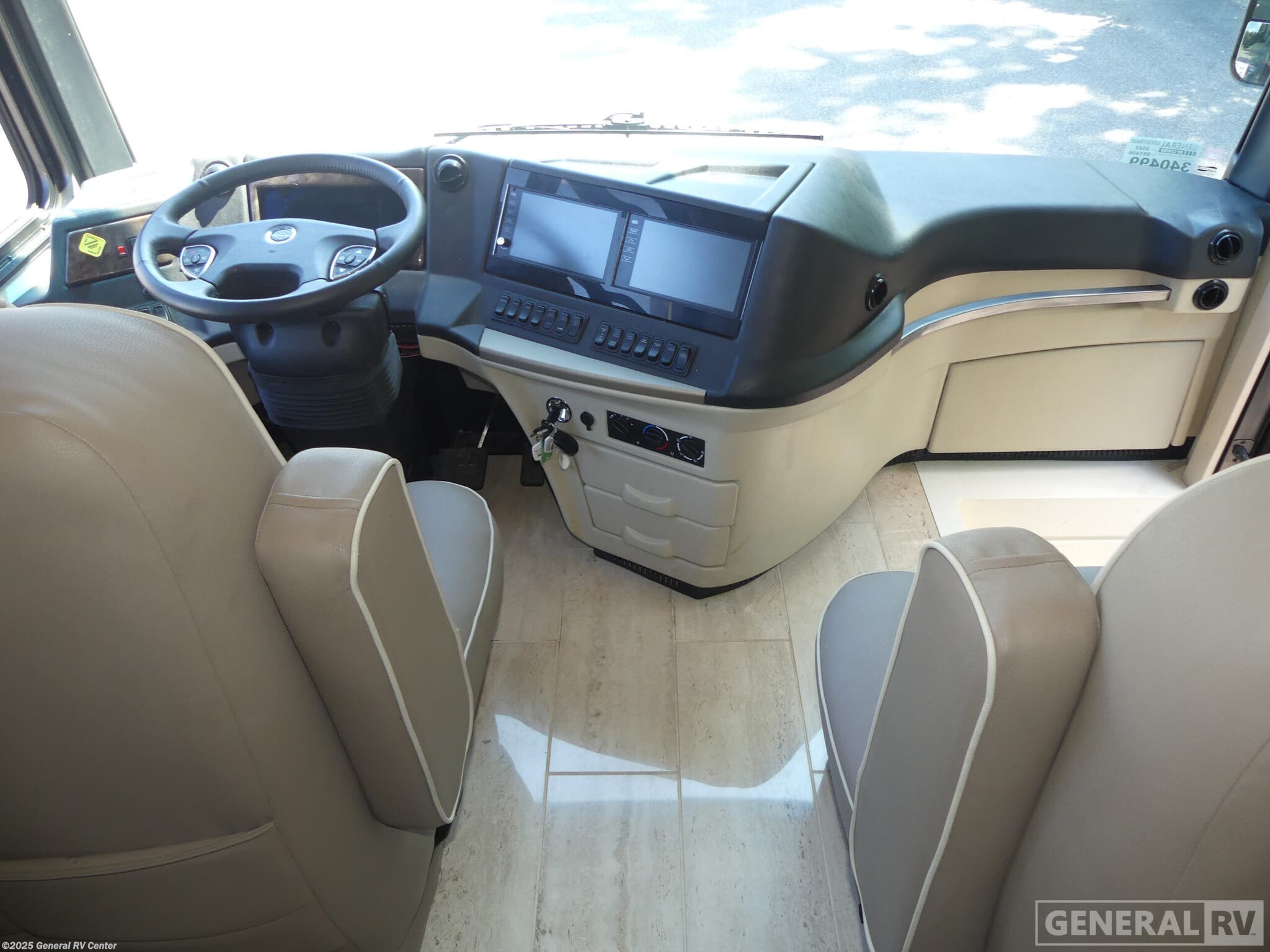 Experience the pinnacle of luxury travel with the 2022 Newmar Dutch Star 4369. This stunning motorhome is designed for those who appreciate the finer things in life, offering a spacious and sophisticated retreat on wheels. At nearly 44 feet in length, this Dutch Star boasts a beautifully appointed interior with three slide-outs, creating an expansive living space that feels just like home. The front living area features plush seating, perfect for relaxing or entertaining, with a retractable LED TV for your viewing pleasure. The center kitchen is a chef's delight, equipped with a full-size electric refrigerator, convection cooking, and a three-burner cooktop, ensuring you have everything you need to prepare gourmet meals on the road. The master suite is an oasis of comfort, featuring a king-sized bed and ample storage, including a wardrobe with washer/dryer prep. The en-suite bath offers a luxurious shower and high-end finishes, providing a spa-like experience. With sleeping accommodations for up to six, including convertible options, this RV is perfect for family adventures or hosting guests. The powered retractable awning extends your living space outdoors, while the Freightliner XC-Series chassis and Cummins I6 Diesel Pusher engine provide a smooth and powerful ride. Discover the freedom of the open road without sacrificing comfort or style. For more information or to see this beauty in person, visit your nearest General RV dealership.