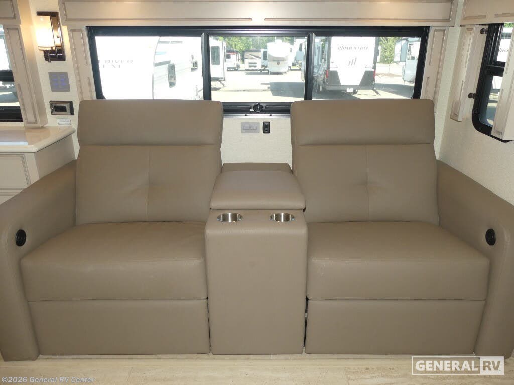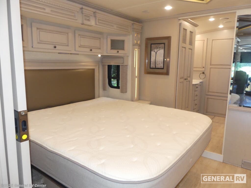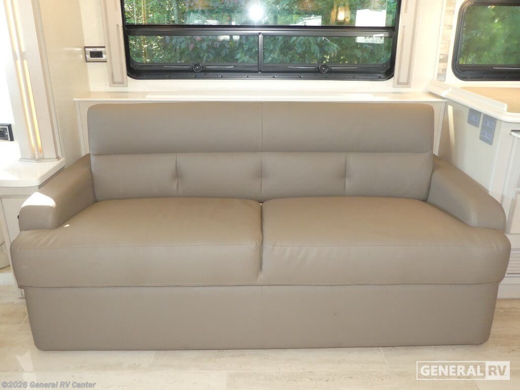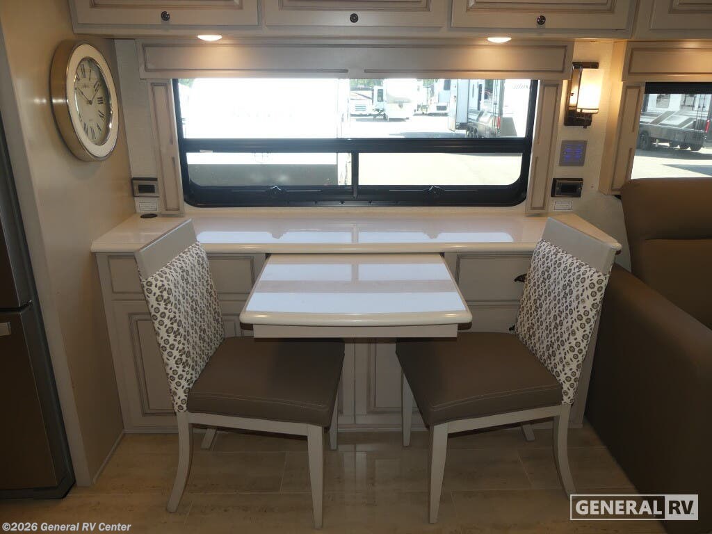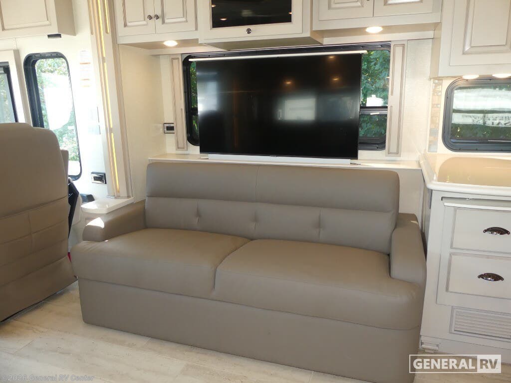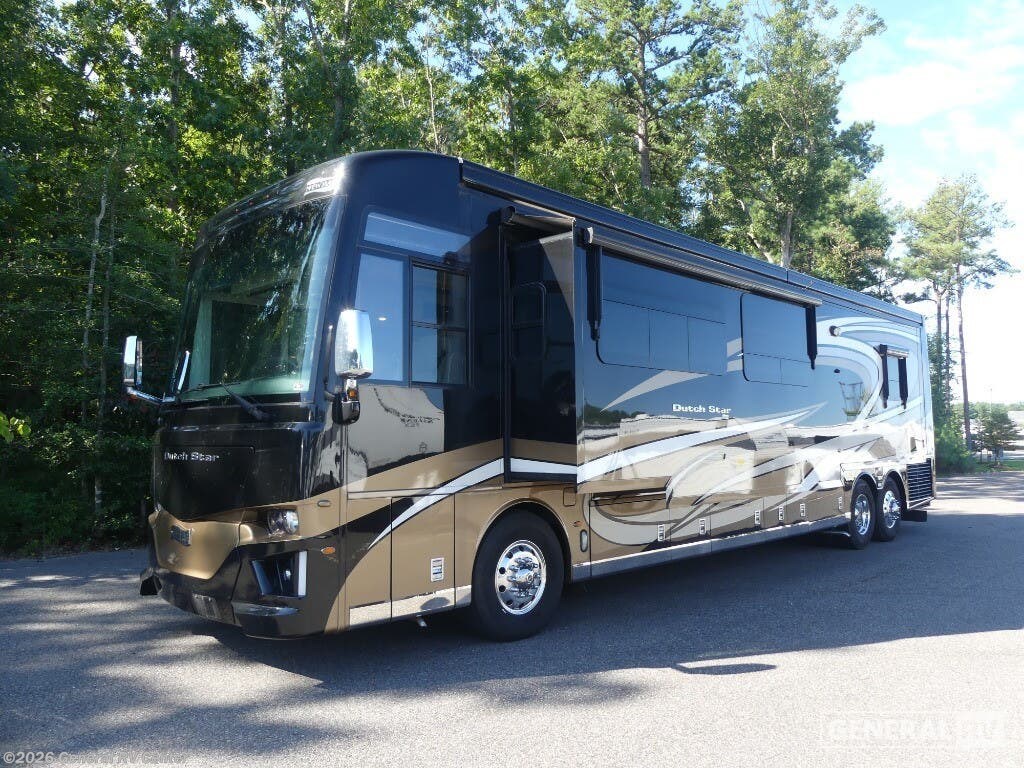 Experience the pinnacle of luxury travel with the 2022 Newmar Dutch Star 4369. This stunning motorhome is designed for those who appreciate the finer things in life, offering a spacious and sophisticated retreat on wheels. At nearly 44 feet in length, this Dutch Star boasts a beautifully appointed interior with three slide-outs, creating an expansive living space that feels just like home. The front living area features plush seating, perfect for relaxing or entertaining, with a retractable LED TV for your viewing pleasure. The center kitchen is a chef's delight, equipped with a full-size electric refrigerator, convection cooking, and a three-burner cooktop, ensuring you have everything you need to prepare gourmet meals on the road. The master suite is an oasis of comfort, featuring a king-sized bed and ample storage, including a wardrobe with washer/dryer prep. The en-suite bath offers a luxurious shower and high-end finishes, providing a spa-like experience. With sleeping accommodations for up to six, including convertible options, this RV is perfect for family adventures or hosting guests. The powered retractable awning extends your living space outdoors, while the Freightliner XC-Series chassis and Cummins I6 Diesel Pusher engine provide a smooth and powerful ride. Discover the freedom of the open road without sacrificing comfort or style. For more information or to see this beauty in person, visit your nearest General RV dealership.