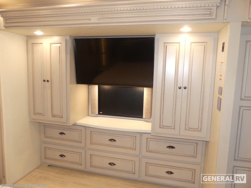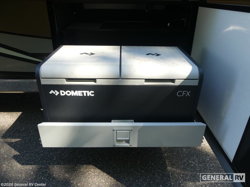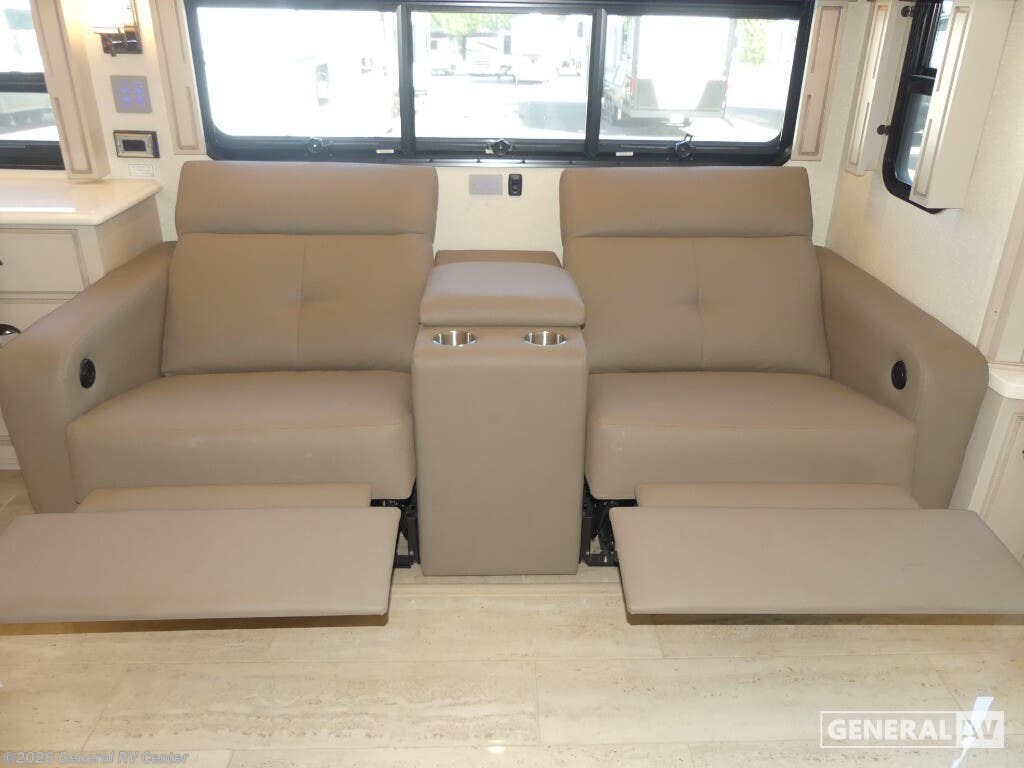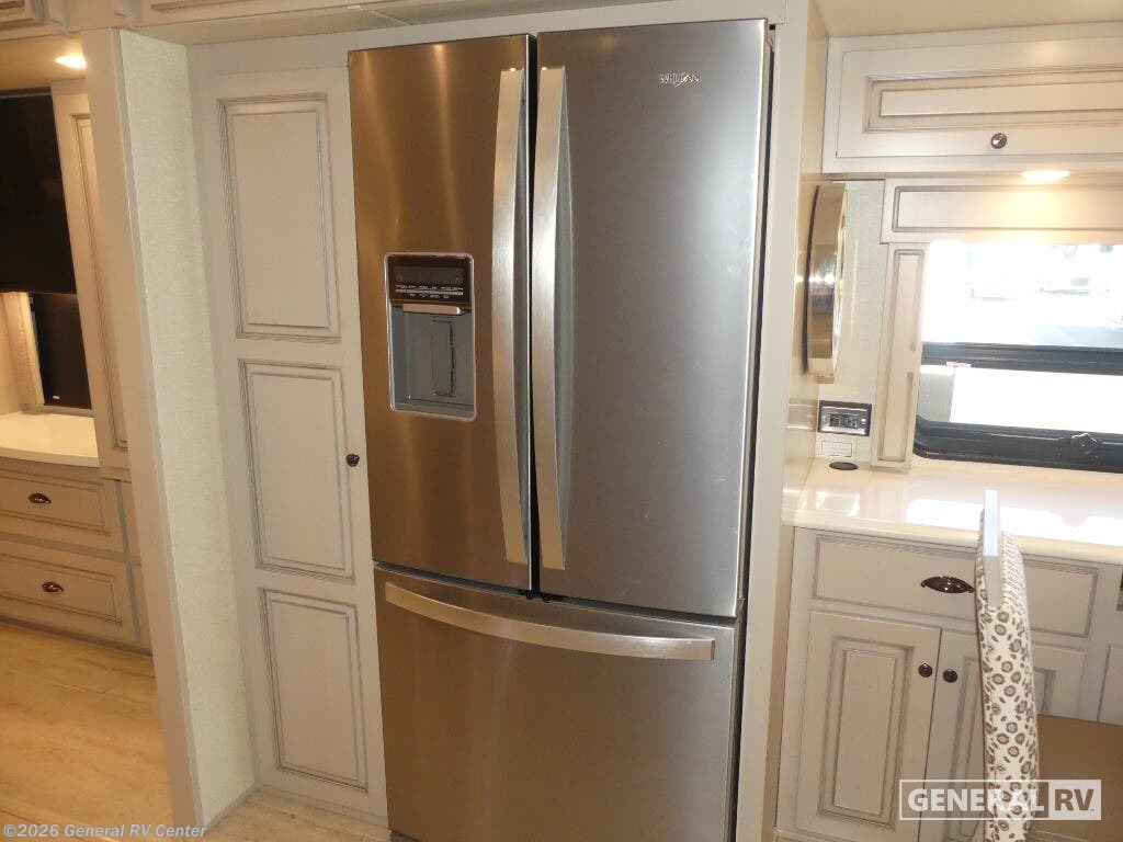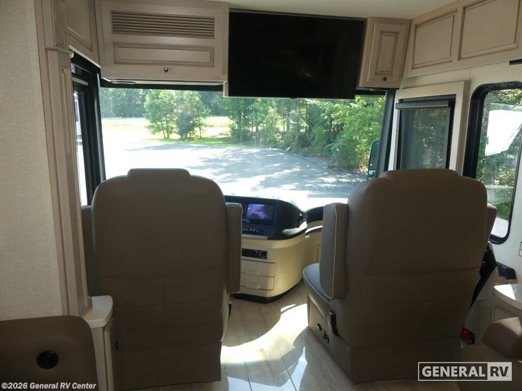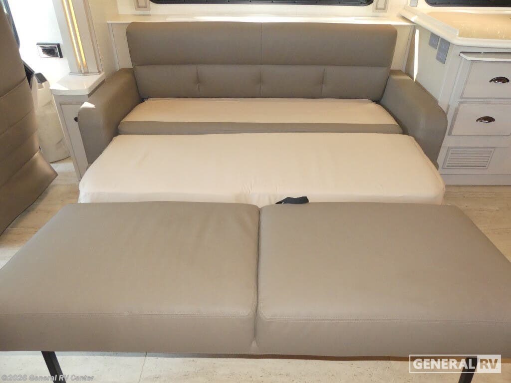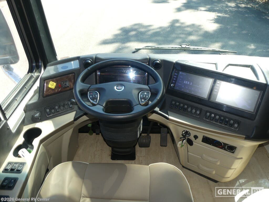 Experience the pinnacle of luxury travel with the 2022 Newmar Dutch Star 4369. This stunning motorhome is designed for those who appreciate the finer things in life, offering a spacious and sophisticated retreat on wheels. At nearly 44 feet in length, this Dutch Star boasts a beautifully appointed interior with three slide-outs, creating an expansive living space that feels just like home. The front living area features plush seating, perfect for relaxing or entertaining, with a retractable LED TV for your viewing pleasure. The center kitchen is a chef's delight, equipped with a full-size electric refrigerator, convection cooking, and a three-burner cooktop, ensuring you have everything you need to prepare gourmet meals on the road. The master suite is an oasis of comfort, featuring a king-sized bed and ample storage, including a wardrobe with washer/dryer prep. The en-suite bath offers a luxurious shower and high-end finishes, providing a spa-like experience. With sleeping accommodations for up to six, including convertible options, this RV is perfect for family adventures or hosting guests. The powered retractable awning extends your living space outdoors, while the Freightliner XC-Series chassis and Cummins I6 Diesel Pusher engine provide a smooth and powerful ride. Discover the freedom of the open road without sacrificing comfort or style. For more information or to see this beauty in person, visit your nearest General RV dealership.