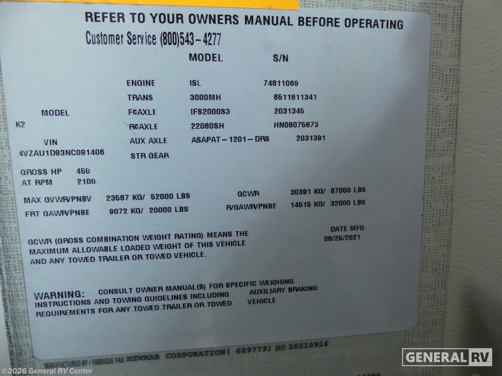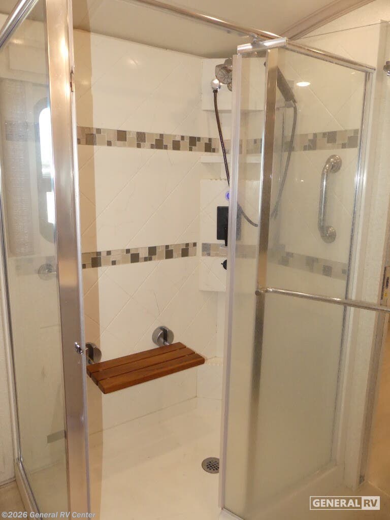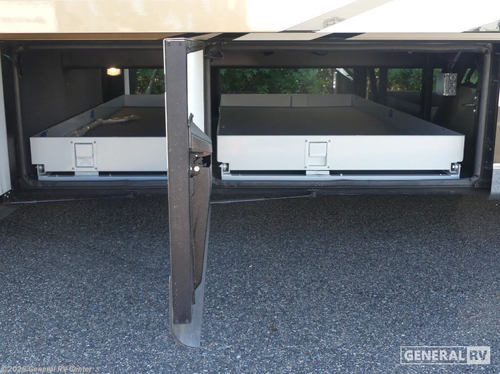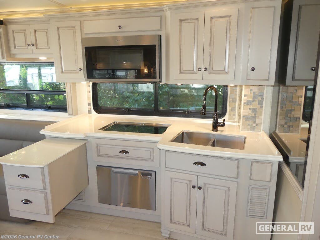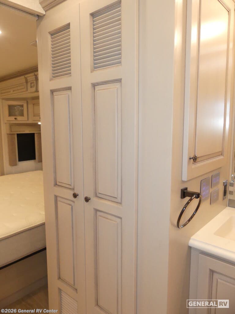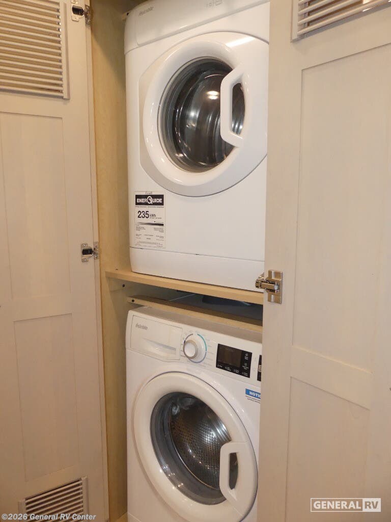 Experience the pinnacle of luxury travel with the 2022 Newmar Dutch Star 4369. This stunning motorhome is designed for those who appreciate the finer things in life, offering a spacious and sophisticated retreat on wheels. At nearly 44 feet in length, this Dutch Star boasts a beautifully appointed interior with three slide-outs, creating an expansive living space that feels just like home. The front living area features plush seating, perfect for relaxing or entertaining, with a retractable LED TV for your viewing pleasure. The center kitchen is a chef's delight, equipped with a full-size electric refrigerator, convection cooking, and a three-burner cooktop, ensuring you have everything you need to prepare gourmet meals on the road. The master suite is an oasis of comfort, featuring a king-sized bed and ample storage, including a wardrobe with washer/dryer prep. The en-suite bath offers a luxurious shower and high-end finishes, providing a spa-like experience. With sleeping accommodations for up to six, including convertible options, this RV is perfect for family adventures or hosting guests. The powered retractable awning extends your living space outdoors, while the Freightliner XC-Series chassis and Cummins I6 Diesel Pusher engine provide a smooth and powerful ride. Discover the freedom of the open road without sacrificing comfort or style. For more information or to see this beauty in person, visit your nearest General RV dealership.