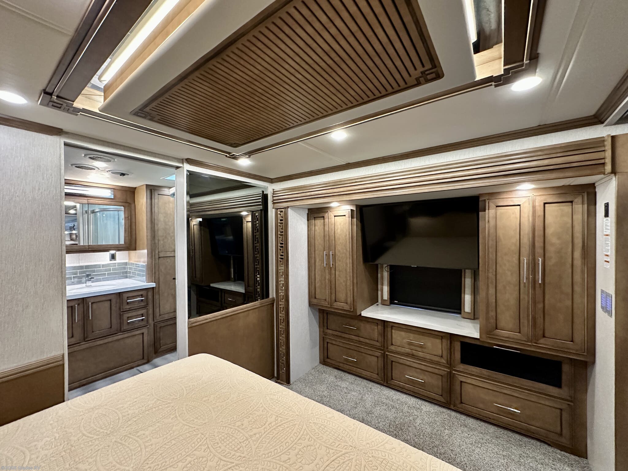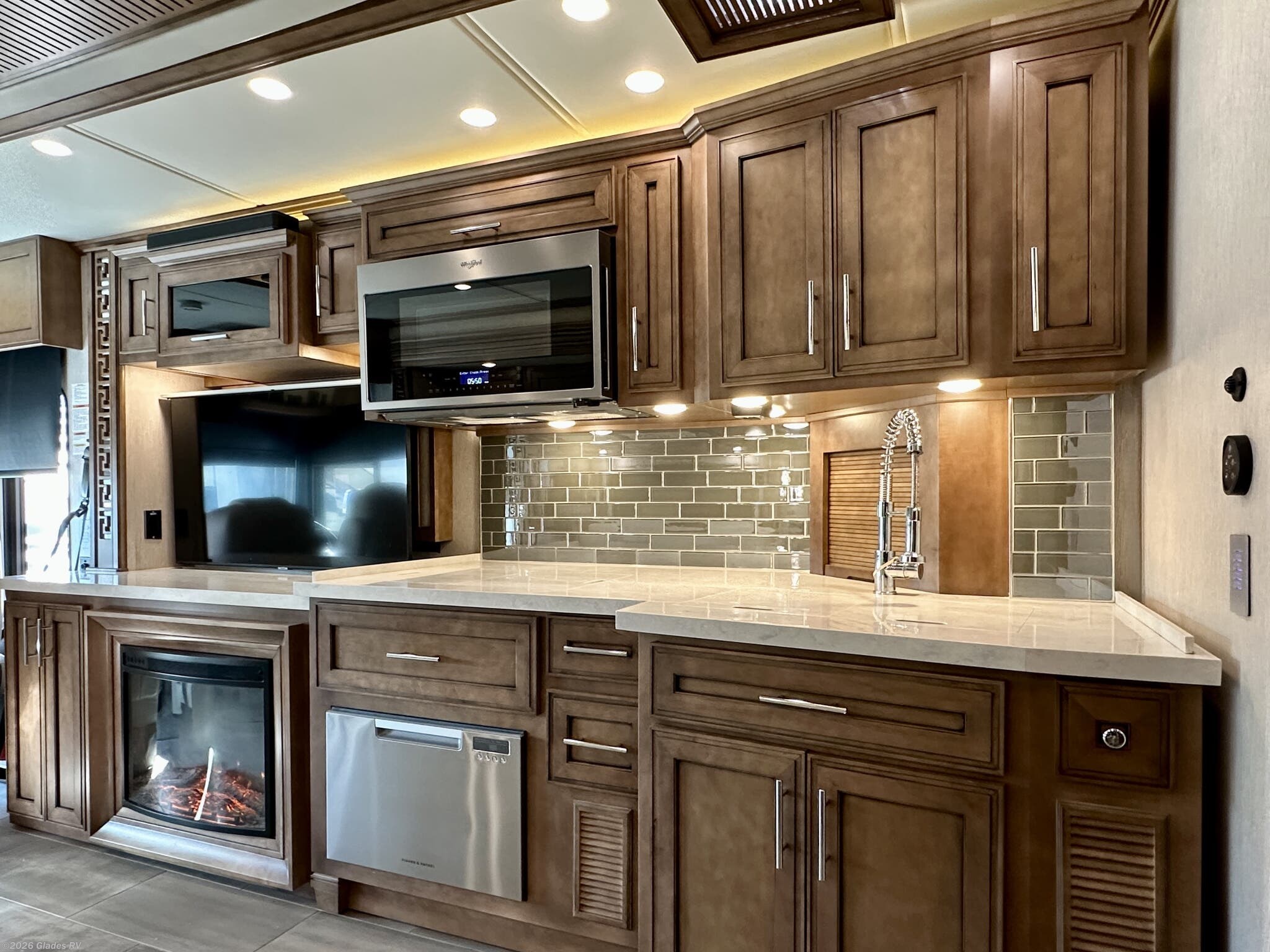 INTEGRATED GIRARD AWNINGS, AUTO LEVELING, SLIDE TRAYS IN BASEMENT, DISHWASHER, TELEVATOR TV, OUTSIDE ENTERTAINMENT, KITCHEN WINDOW, STACKED WASHER & DRYER, RESIDENTIAL REFRIGERATOR, KING BED, FIREPLACE, HYDRONIC HEATING, HEATED FLOORS AND MUCH MORE...