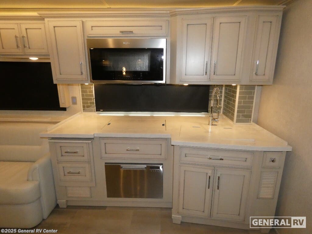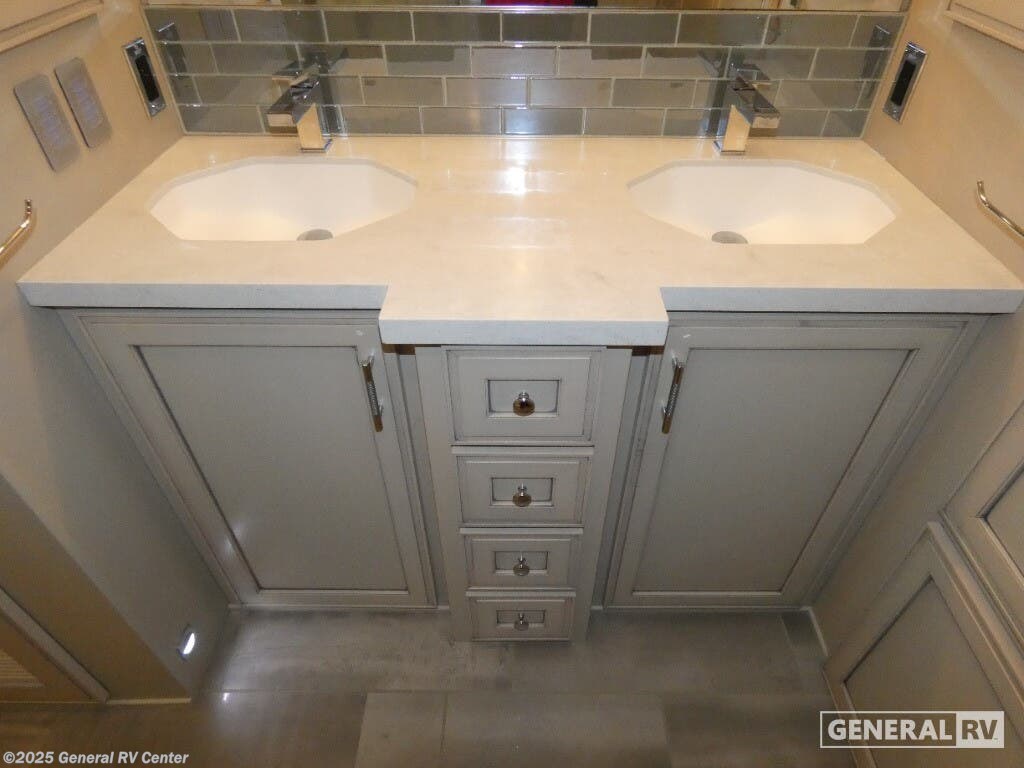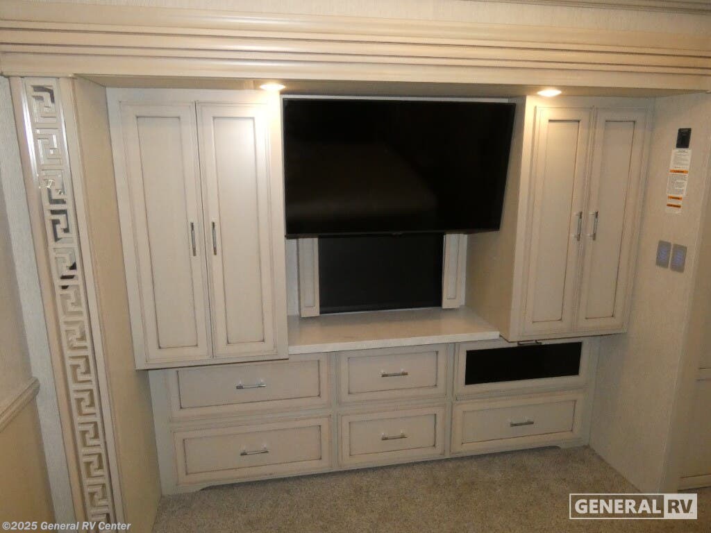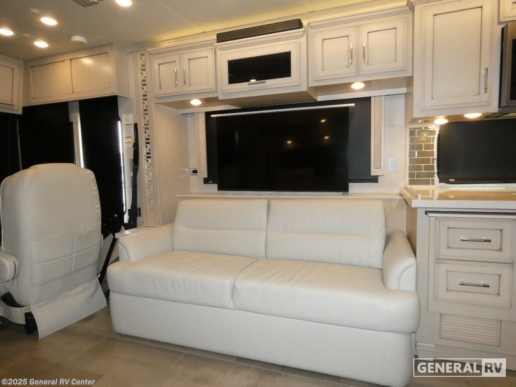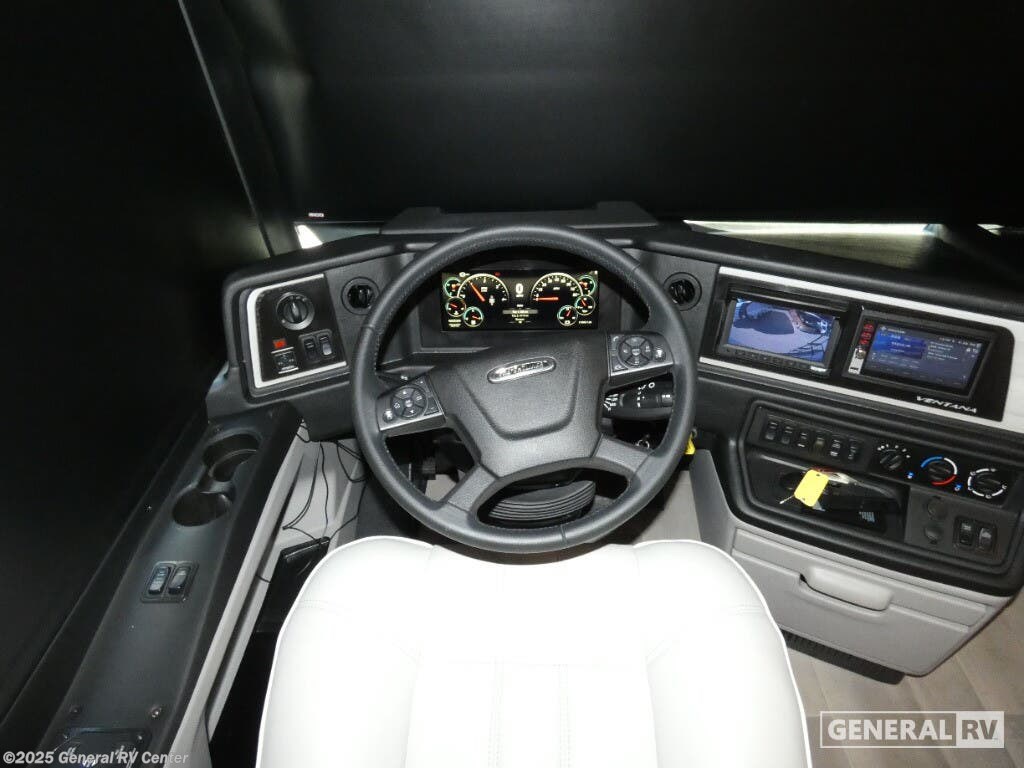 Experience a home away from home with this motorhome! Two can get ready at once in the full rear bathroom with the dual sink vanity, plus it has a 50" x 34" shower with a seat, a linen closet, a wardrobe with doors, adjustable shelves, and even an area prepped to add an optional washer and dryer. The master suite has access to the bathroom, a king bed slide, and a dresser with wardrobes on either side and a Samsung LED 4K TV. You can prepare your best meals with the three burner recessed gas cooktop, pull-out cabinet, and large pantry then enjoy them at the hide-a-leaf dinette. Now that your belly is full, head to either the 87" hide-a-bed sofa or the 74" jackknife sofa while a movie plays on the 50" Samsung LED 4K TV on a power lift! Each one of these Newmar Ventana Class A diesel motorhome comes with a fabulously fully-appointed kitchen to enjoy home cooked meals while on the road! The STAR foundation improves strength and durability, as well as a quieter and more stable ride than any other Class A coach. You will experience up to 400 horsepower with the Cummins diesel engine and a smooth drive with the Comfort Drive adaptive steering. Each model is fitted with a cargo liner, 5/8" floor decking, and a 5/'8" bead foam, plus a Freightliner chassis with the option to change it to a Spartan chassis. The full-paint Masterpiece Finish comes with Diamond Shield protection on the front cap to keep your unit protected while driving down the highway. Come find your favorite model today!