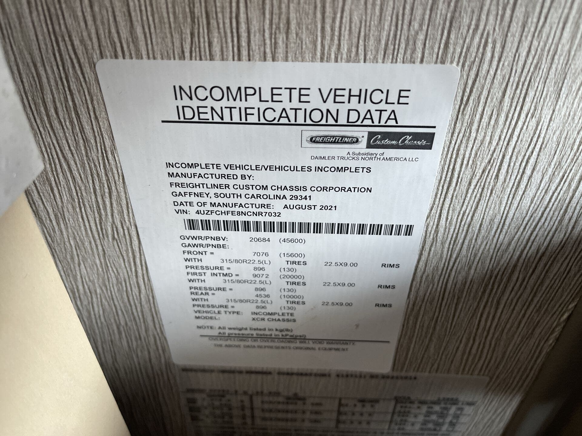 - Chassis: Freightliner XCR Tag Axle