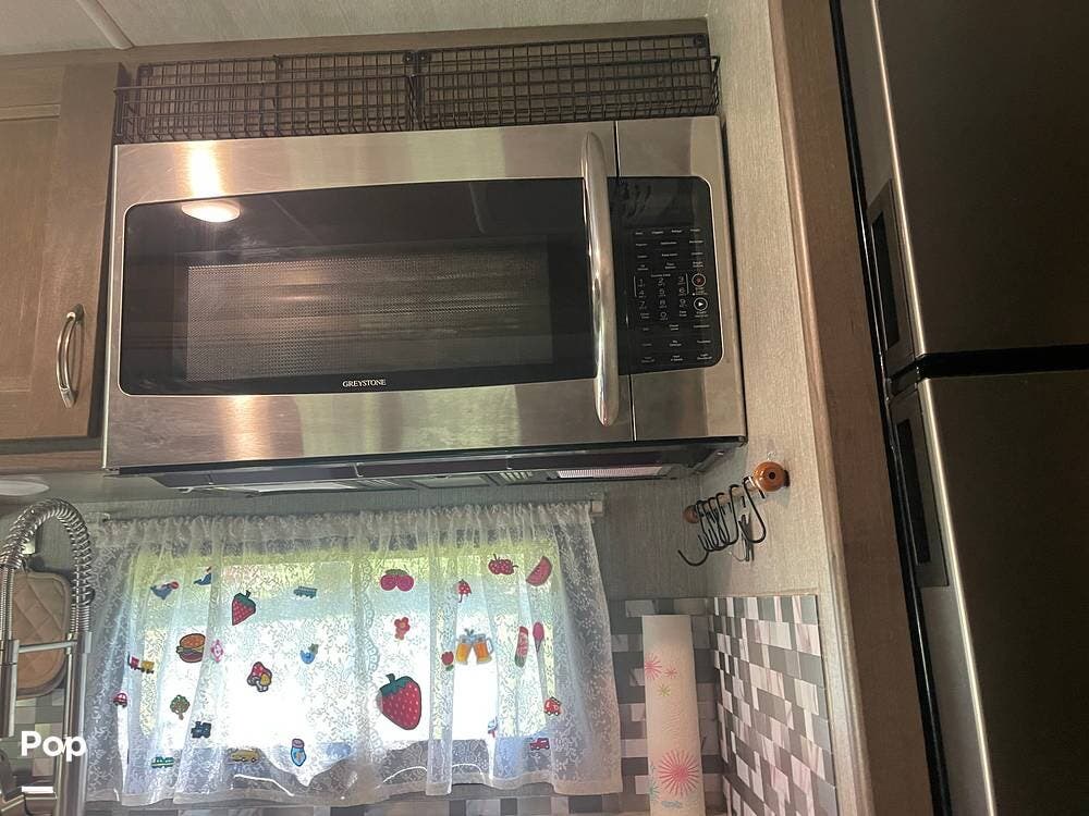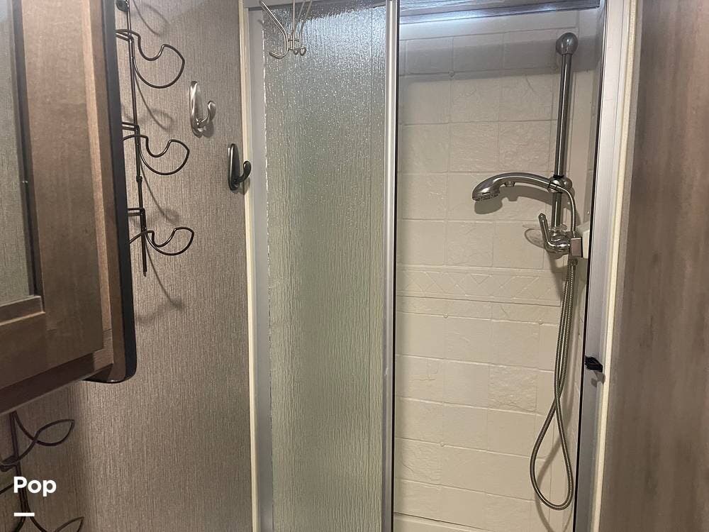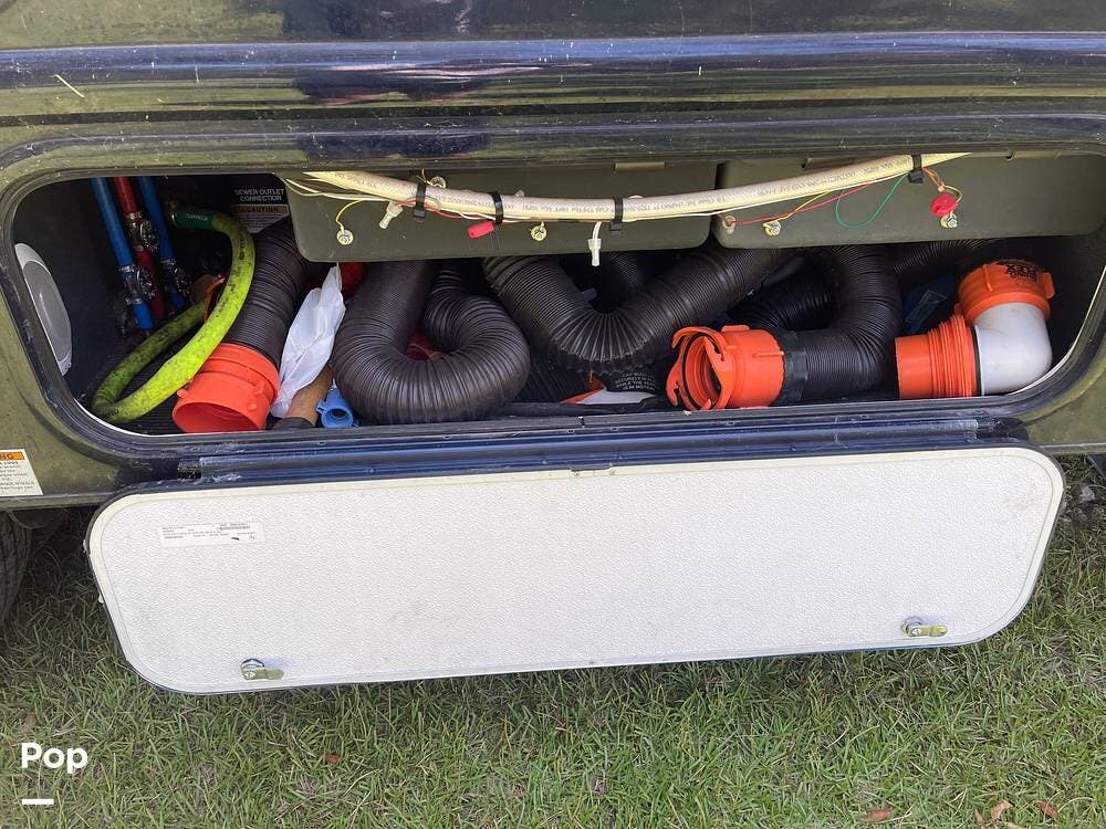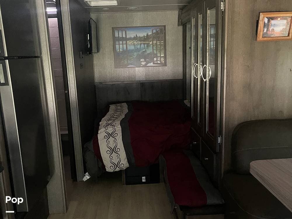 Entertainment and relaxation are at your fingertips with a large LED TV, Bluetooth stereo, and exterior speakers for enjoying your favorite music outdoors. Climate control is managed by a 13,500 BTU air conditioning unit and an efficient furnace, ensuring you remain comfortable throughout all seasons.
