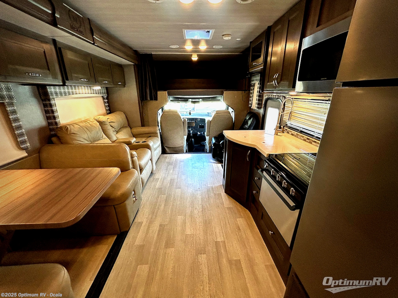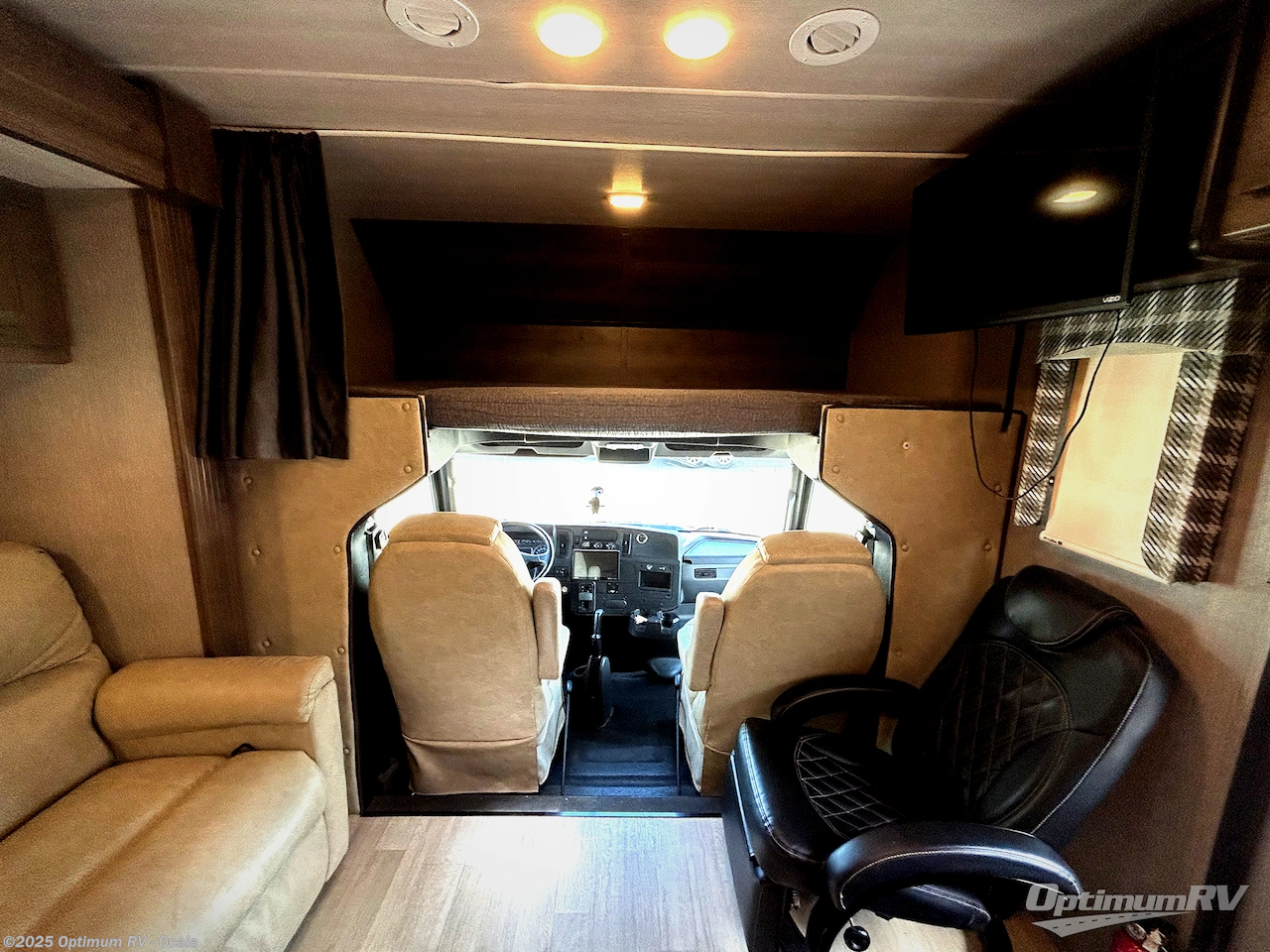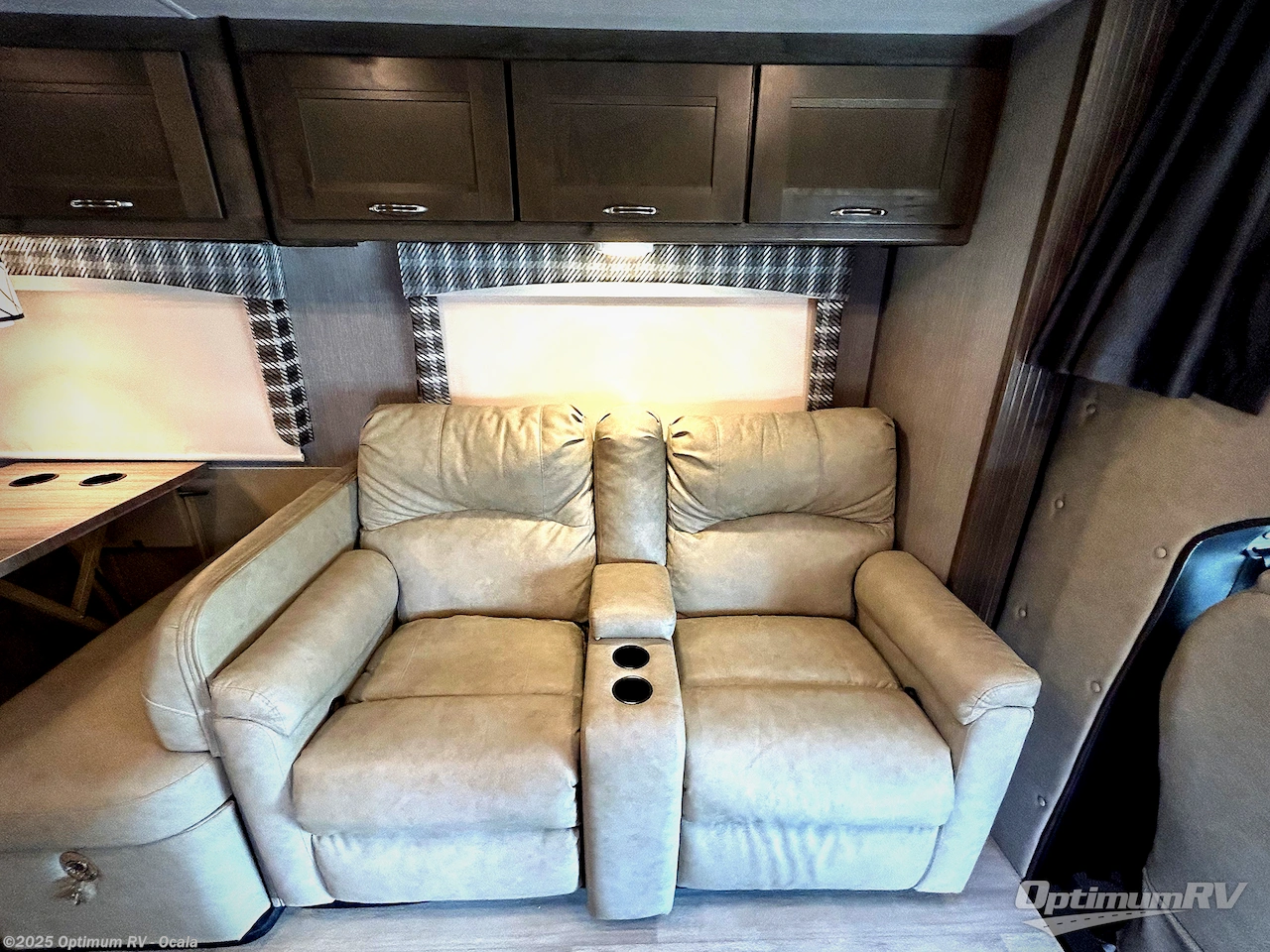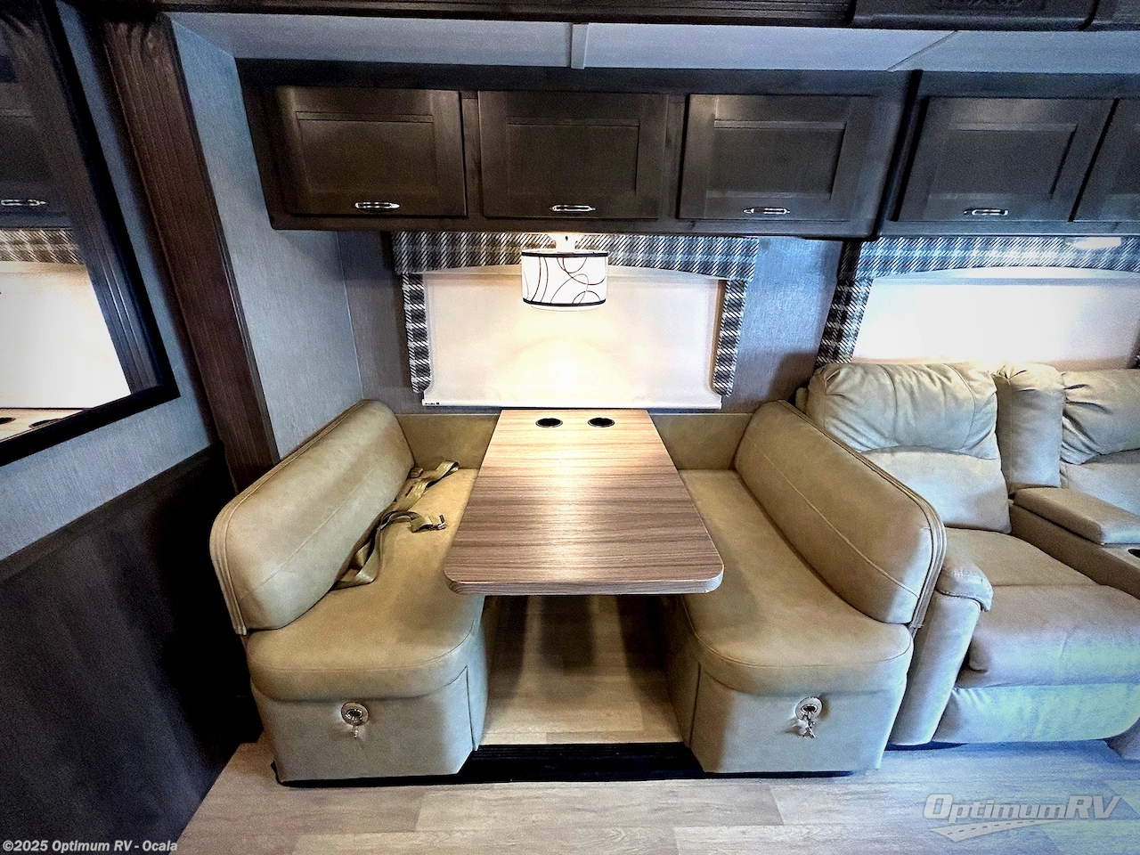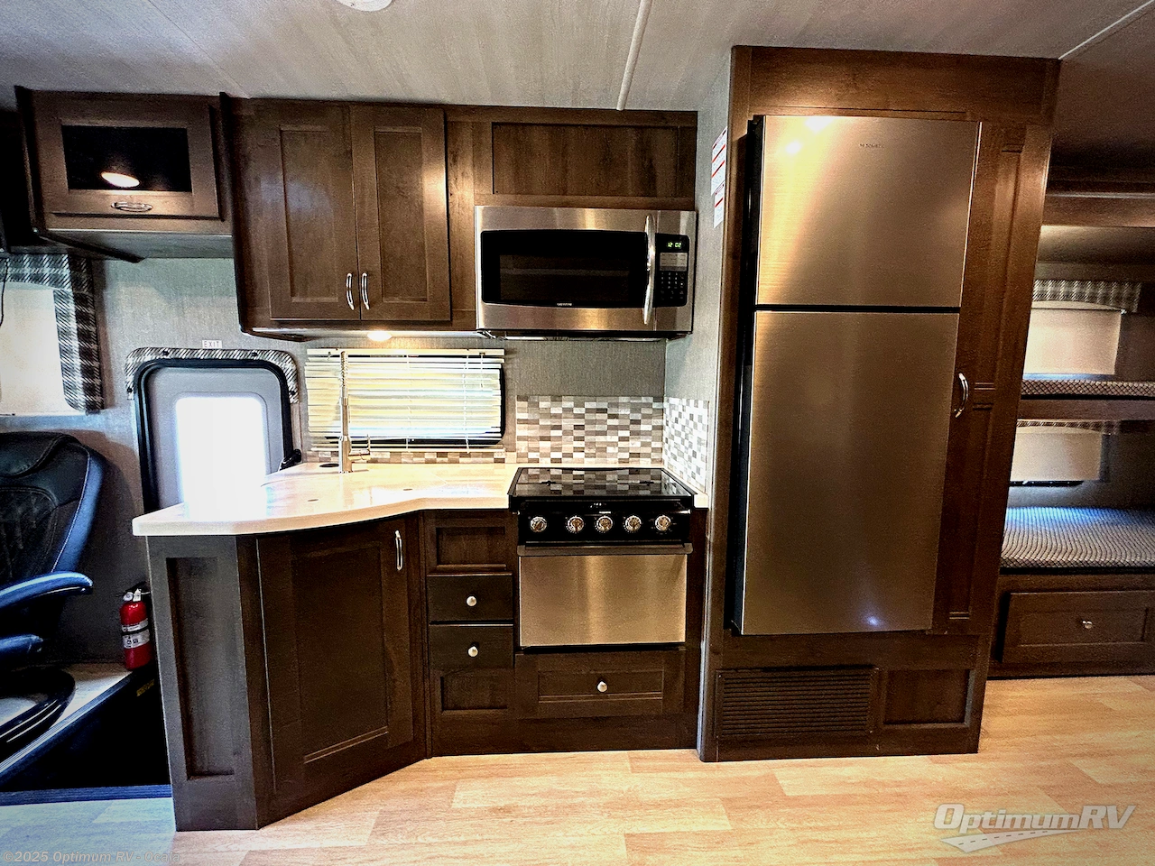 Find your favorite destination and take your favorite people with you in this motorhome! Everyone will have a comfortable place to lay their head at night with a rear queen bed, a bunk over cab with a LED TV, the deluxe tri-fold sofa, and set of bunk beds that could be switched out for an optional wardrobe. You could even transform the deluxe dream booth dinette into a sleeping space if needed. After a long day of traveling, clean up in the full bathroom with the shower and enjoy the natural lighting from the skylight above it. Sip on your morning coffee while relaxing in the Euro recliner while bacon is cooking on the three burner cooktop.