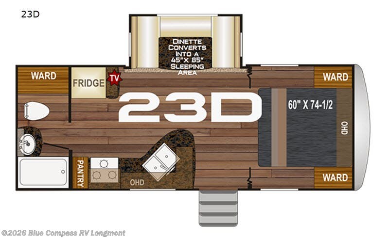 Looking for privacy and comfort at night as well as conveniences such as stainless steel appliances and a full bathroom with a wardrobe, look no further! You will also find a slide out U-shaped dinette that offers more floor space to move about plus dining, gaming and sleeping space for one or two. The kitchen also offers a pantry for dry goods and overhead storage for dishes and such as well as a 7 cu. ft. refrigerator to store your cold items. Outside you will enjoy features like the Carefree Travl'R 12V awning to protect you from the sun while you watch the kids play and the outdoor shower for them to rinse off before going inside.