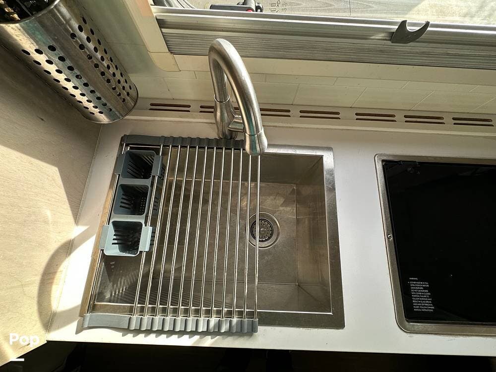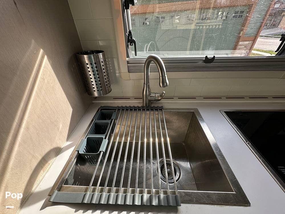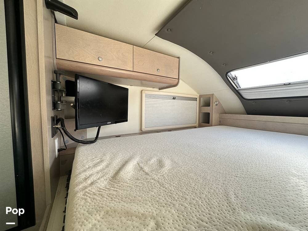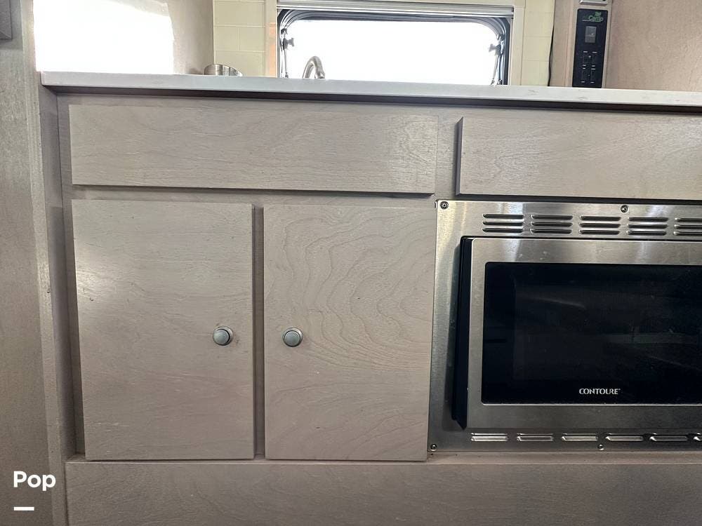 Among the many interior features, you'll find the extremely quiet ALDE heat & hot water system, deluxe Amish-built cabinetry, a large wet bath, a 2-burner cooktop & convection microwave, a Tempur-Pedic mattress, and a star-gazer window for dreamy nights of sleep.