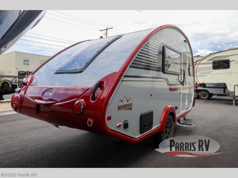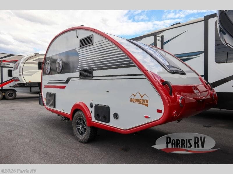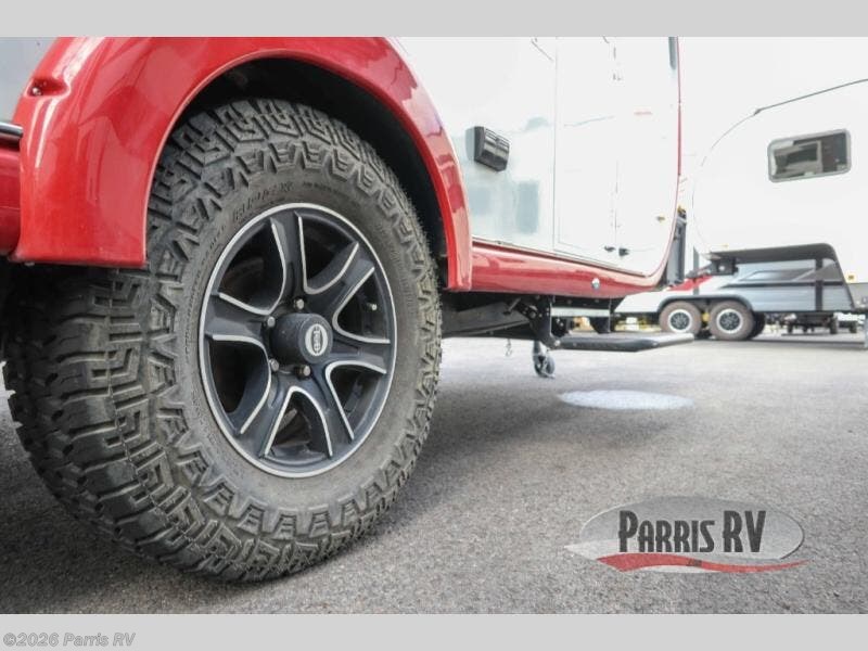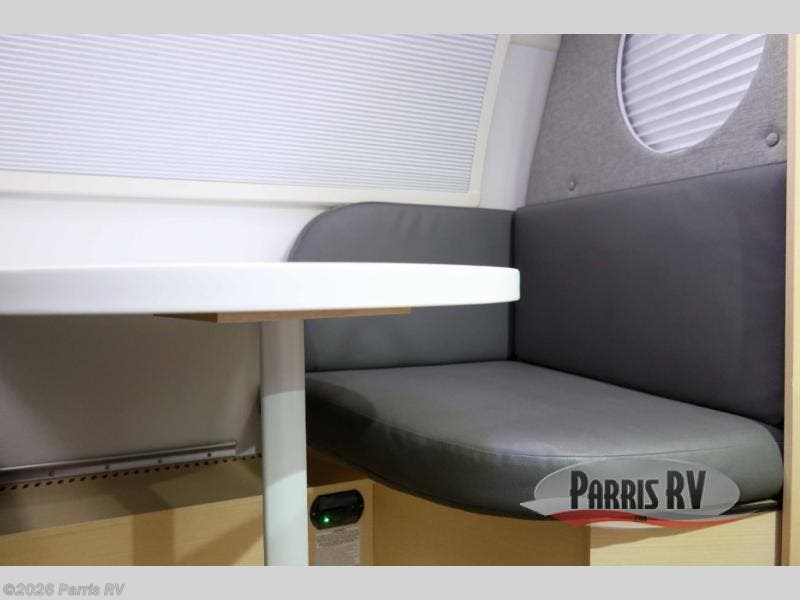The TAB 400 by nuCamp RV is mighty in essentials and spacious for a teardrop trailer! There is a queen-size sleeping area, a spacious wet bath, a galley kitchen and plenty of storage plus a dinette. Inside you will enjoy the Bluetooth media center, the LED lights, the screen/shade system, and the custom Ohio-Amish cabinetry. Some conveniences include a solar roof package allowing you to choose a spot off-grid to camp, a power center with a lithium switch, and two 6-volt AGM batteries. There is a Boondock package option available with 15" sport rims, aggressive off-road tires, a Boondock entry handle and graphics, plus more if you choose to add that option. Select a TAB 400 today to enjoy the unique shape of the teardrop, and the spacious interior for extended trips!