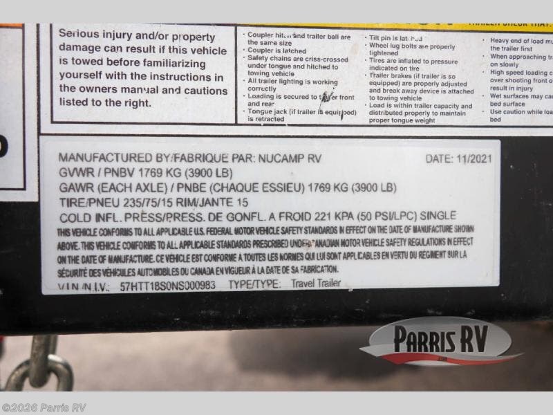 Request More Info on this 2022 NuCamp TAB 400 Std. Model Offered for sale by Parris RV