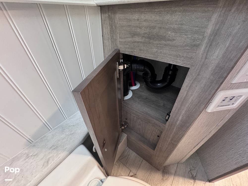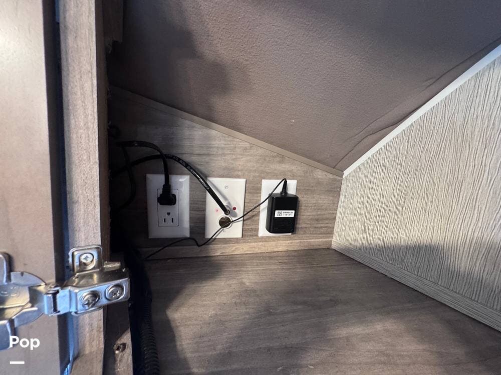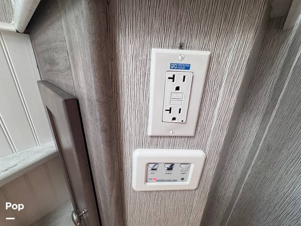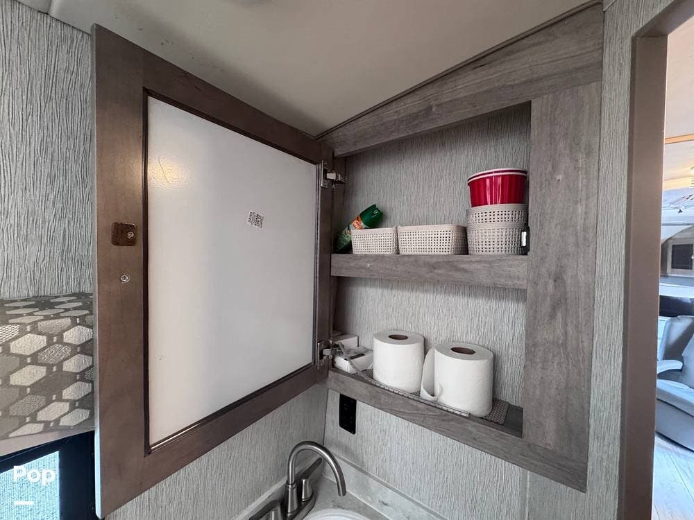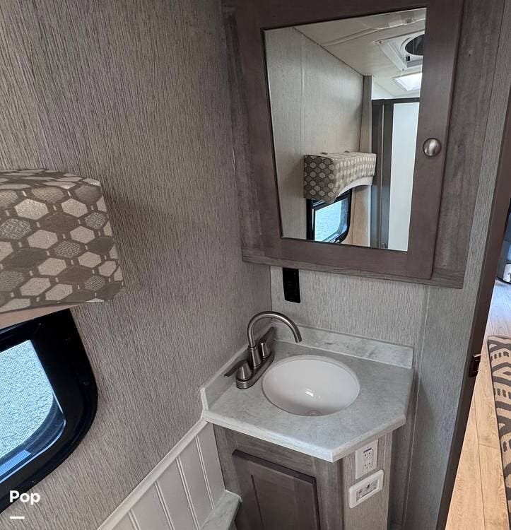 The kitchen is well-equipped with a convection microwave, a stovetop, a refrigerator/freezer, and plenty of cabinets and plenty of counter space to use to prepare those delicious meals. There is also a hookup for grilling outside.
