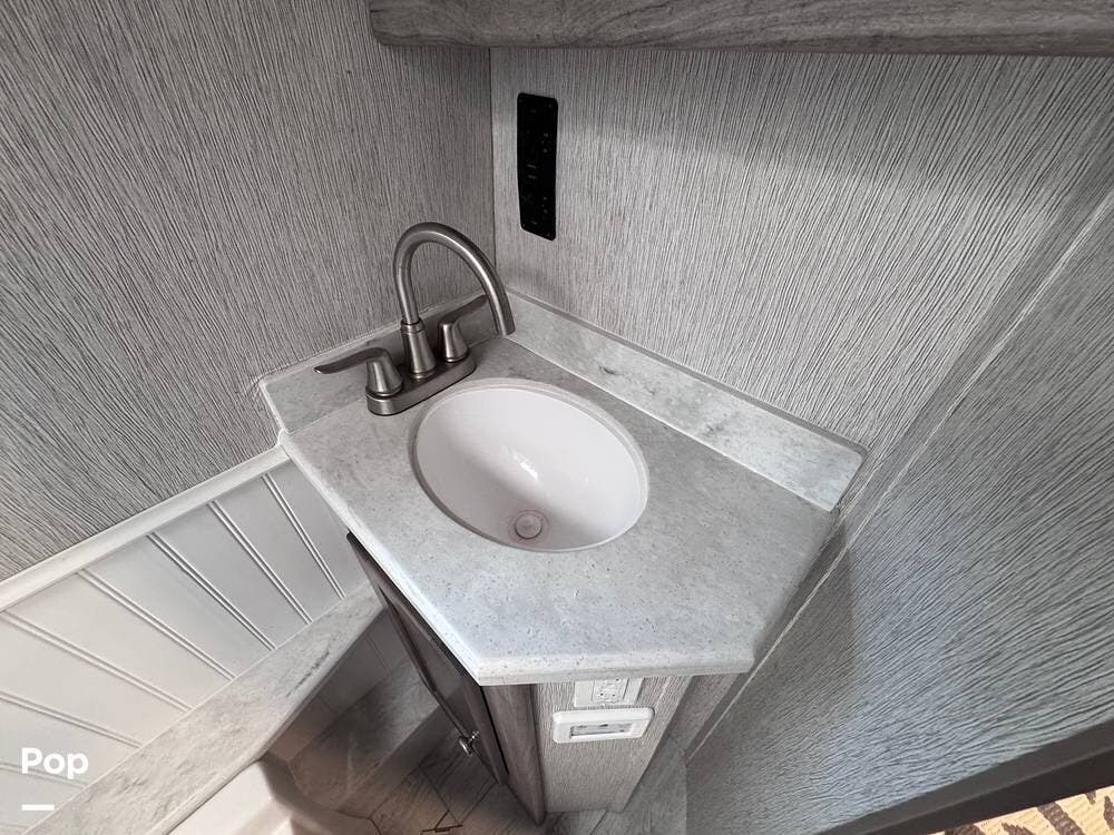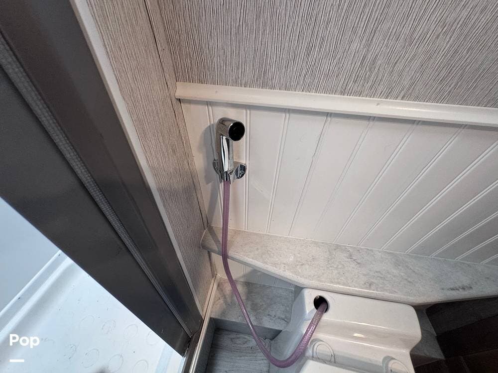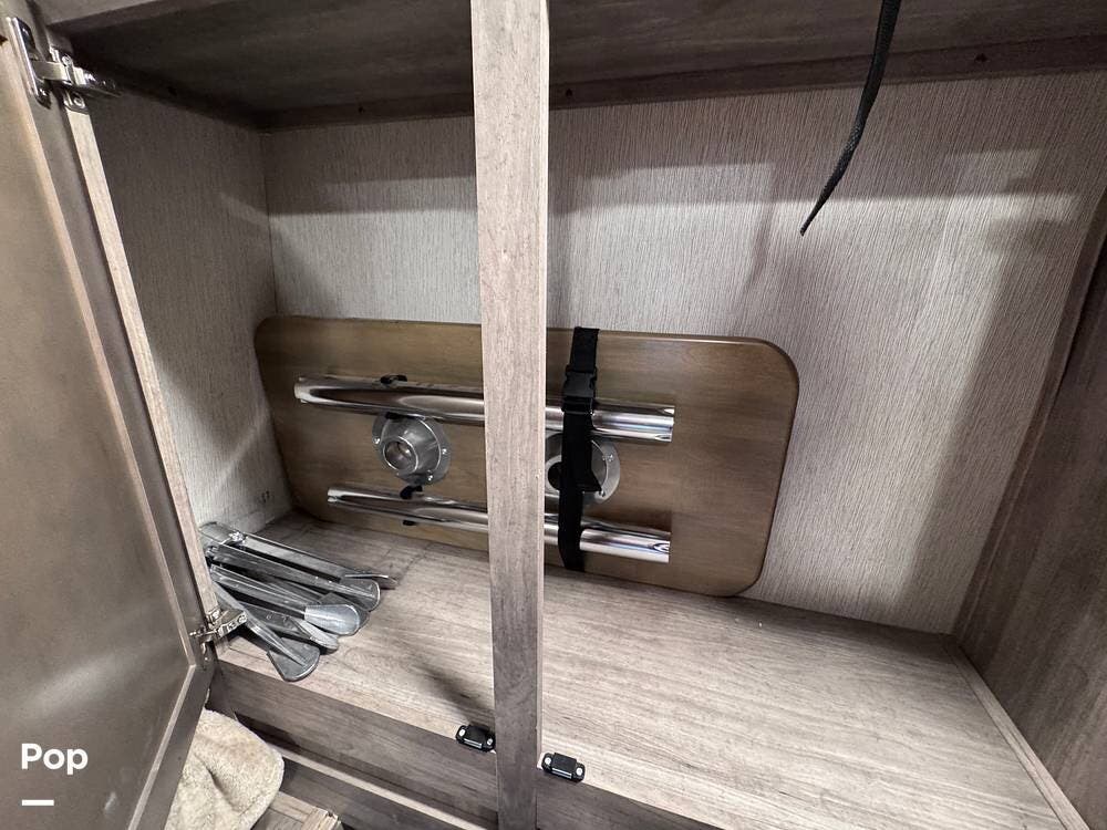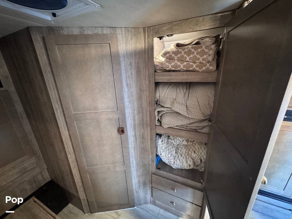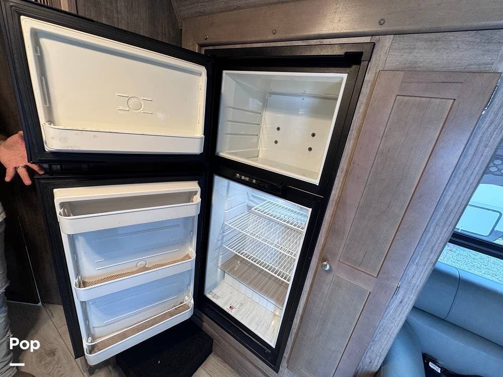 The kitchen is well-equipped with a convection microwave, a stovetop, a refrigerator/freezer, and plenty of cabinets and plenty of counter space to use to prepare those delicious meals. There is also a hookup for grilling outside.