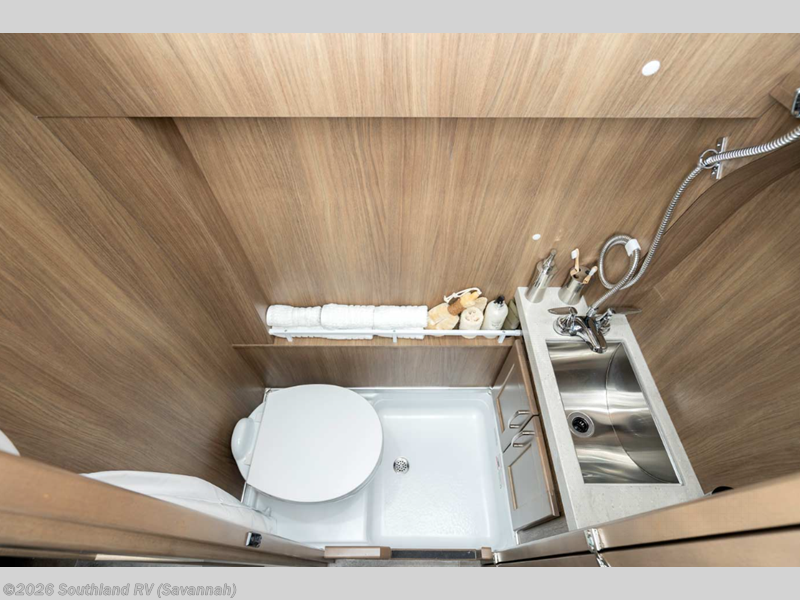 This 2.2 Ontour model is similar to model 2.0, but with a larger refrigerator, and more storage space in the bath. The rear power sofa converts to a 68" x 79" queen-sized bed with memory foam cushions for all-around comfort and the wet bath allows you to clean up each day. There is also a vanity with storage, a sink, and a Corian countertop in the bath for added convenience. Prepare meals either on the one burner induction stove top or in the convection microwave oven and clean up will be a breeze with a stainless steel sink that includes a high-arc faucet.