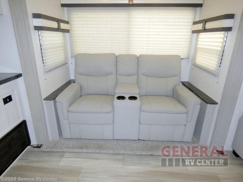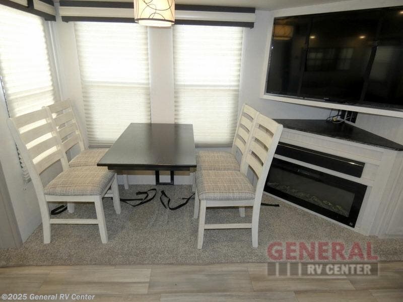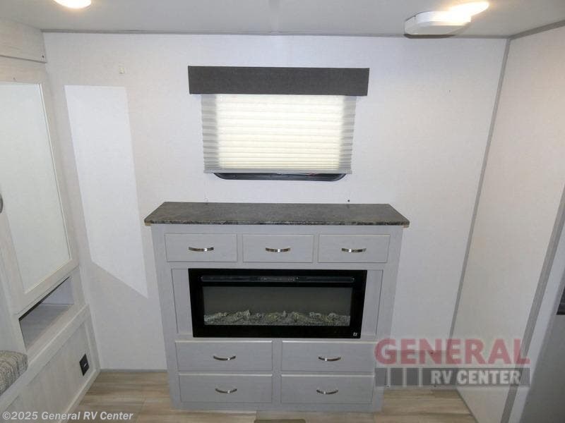 You will be ultra impressed by this LaCrosse travel trailer! First, the interior is made to feel just like your own home with its theater seating, hide-a-bed sofa, free-standing table with chairs, and entertainment center with 50" LED TV and fireplace. Second, you'll find even more residential comfort in the rear kitchen that has a Furrion residential cooktop, a 30" microwave oven, and a 10.7-cubic foot refrigerator. And lastly, the walk-through bathroom has two doors on either side with one of those doors leading directly into the front private bedroom, so you know you'll enjoy great comfort in this space each night. There is also a bedroom bench at the front of this trailer which gives you an enjoyable place to relax as you take in the views from the front windshield.
