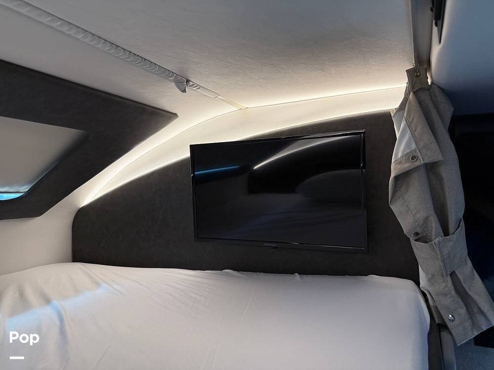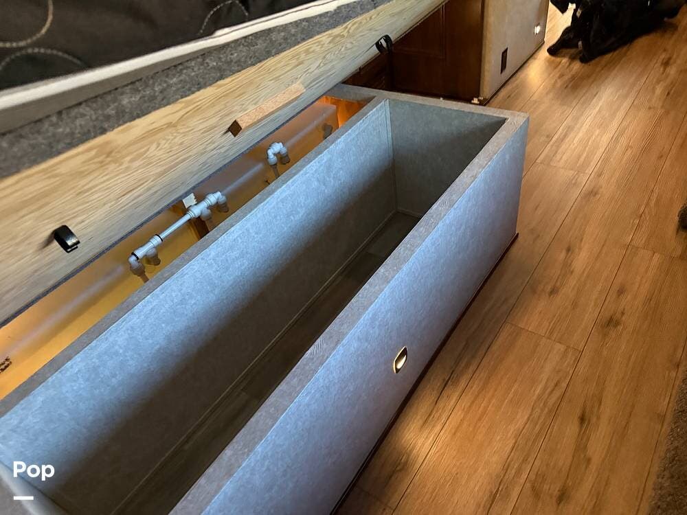 Large powered king-size bed with plenty of storage to accommodate all closet items for a long journey.