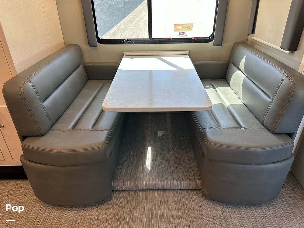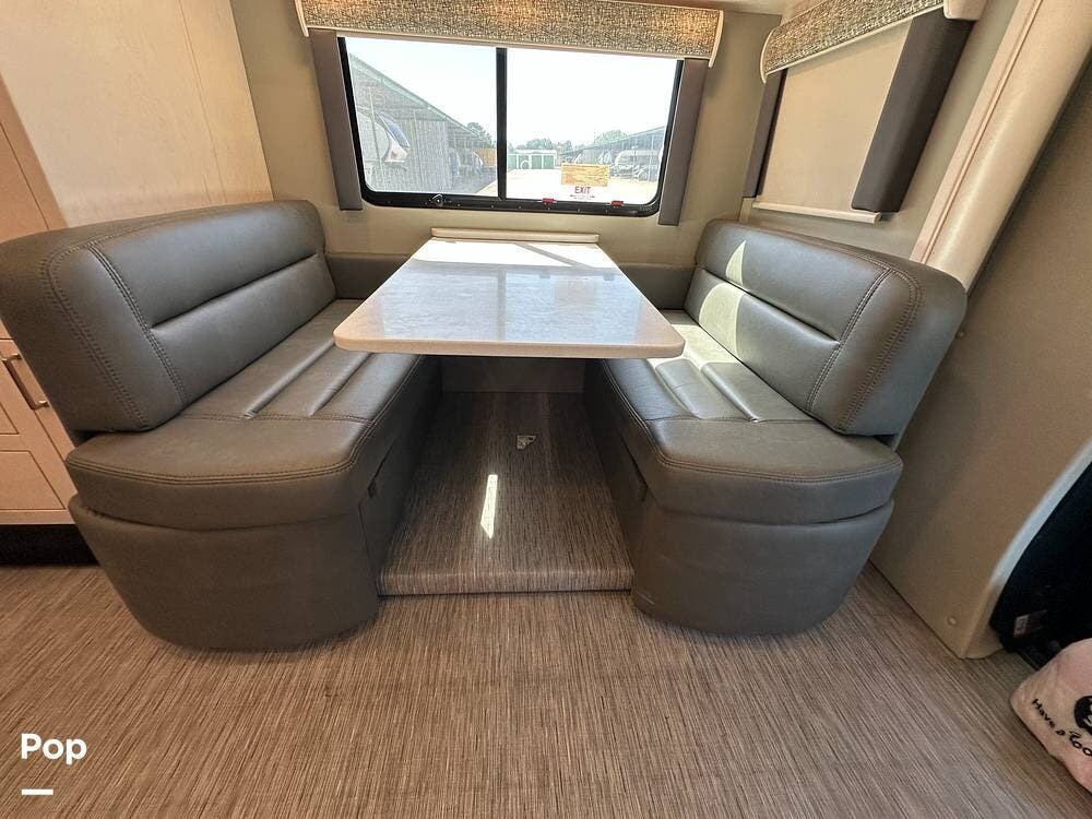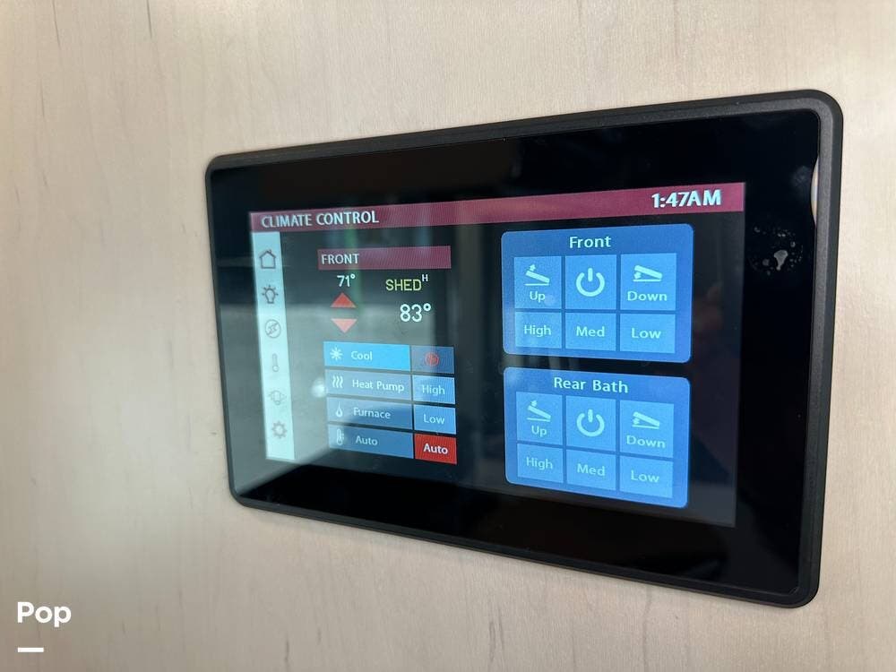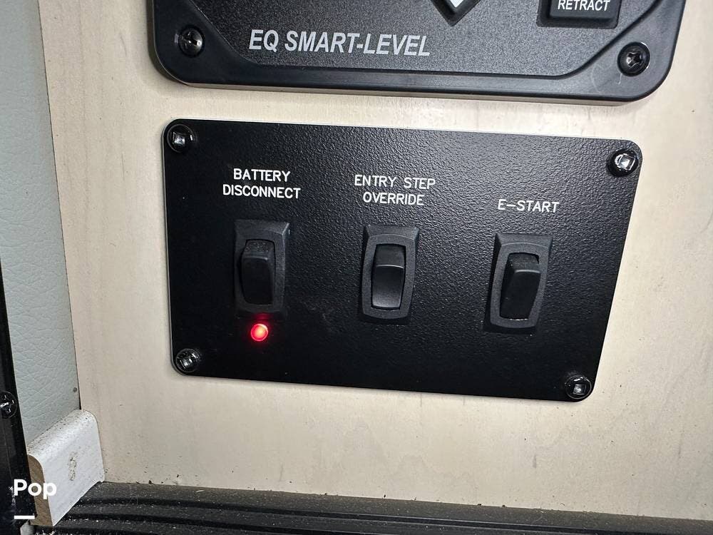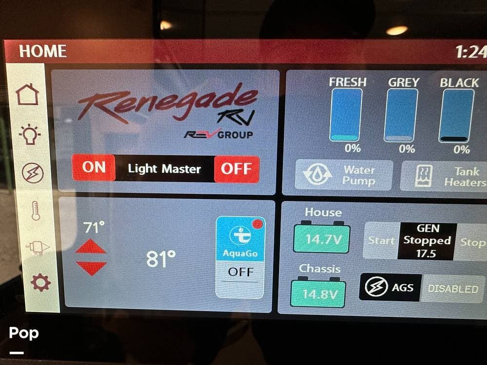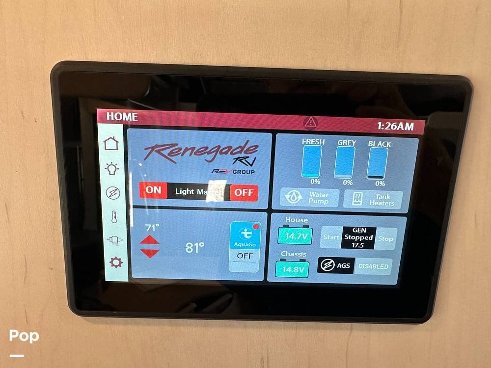 Interior comfort is created by a full-wall slide that expands the living and kitchen area, level throughout, thanks to Renegade's four-point hydraulic leveling system, which is controllable via app.