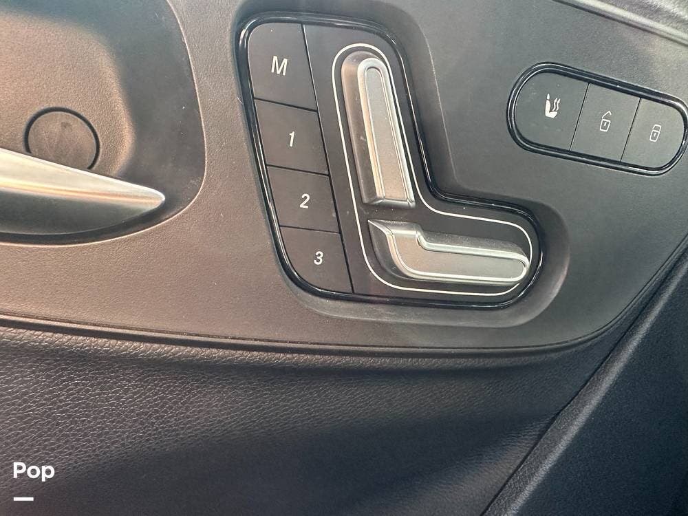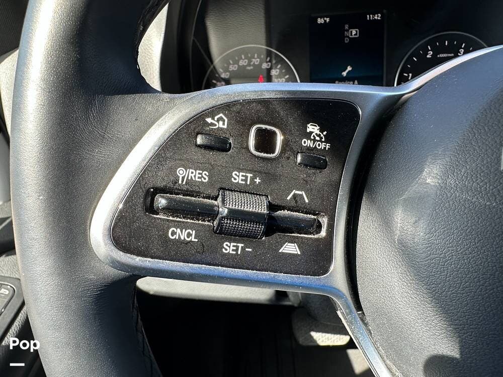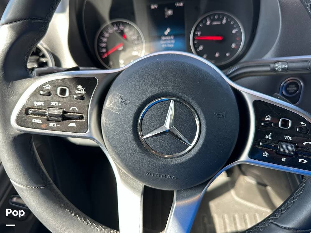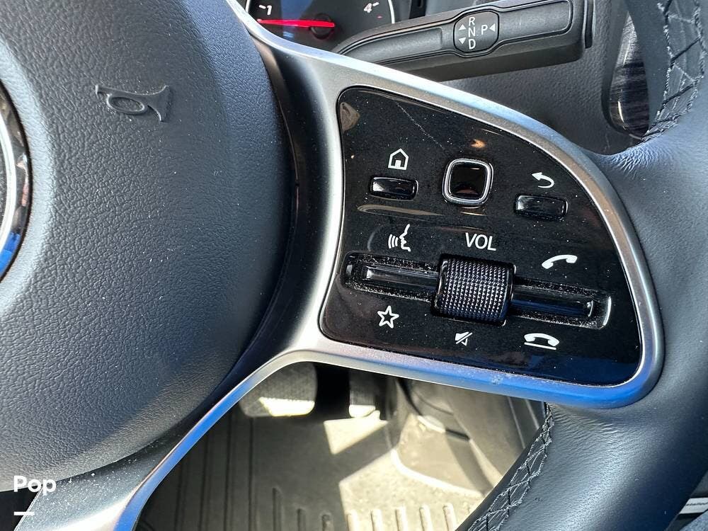 Safety and comfort features include lane-keeping assist, Distronic active distance assist, heated power seats that swivel, and the MBUX multimedia screen with Apple CarPlay/Android Auto.