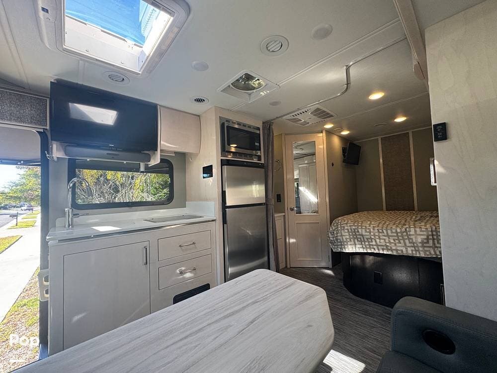At just over 25 feet, the Vienna offers exceptional maneuverability without sacrificing comfort. Inside, Winnebago's reputation for craftsmanship is immediately apparent. High-quality cabinetry, soft-touch surfaces, and modern finishes create a clean, upscale living environment that feels far larger than its footprint.